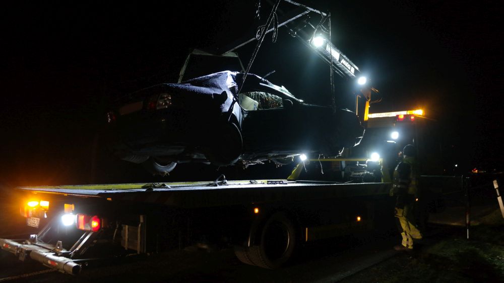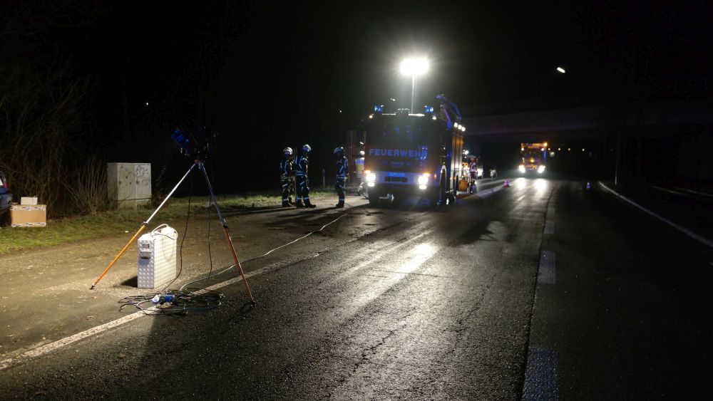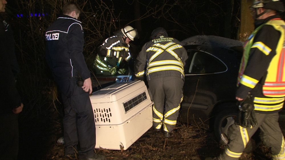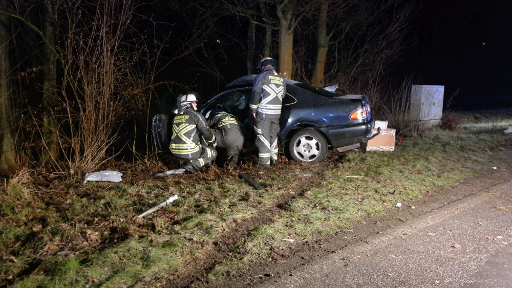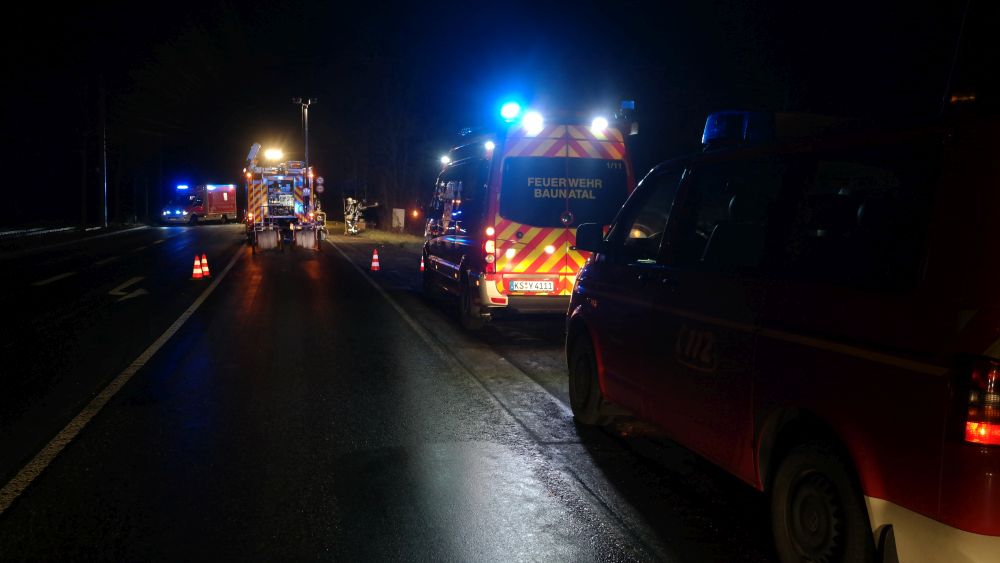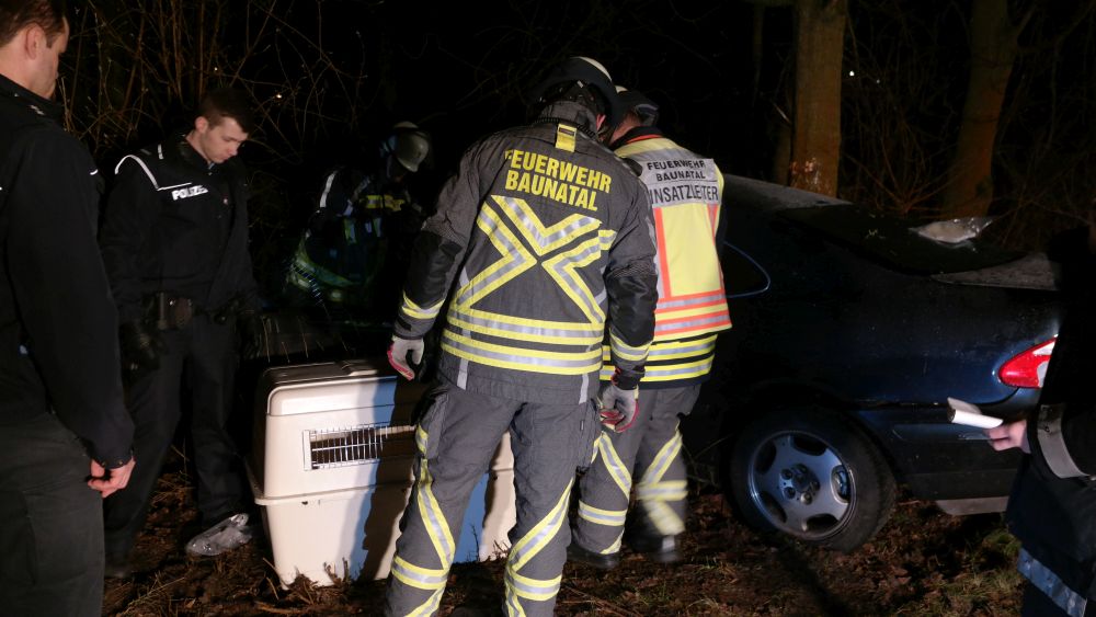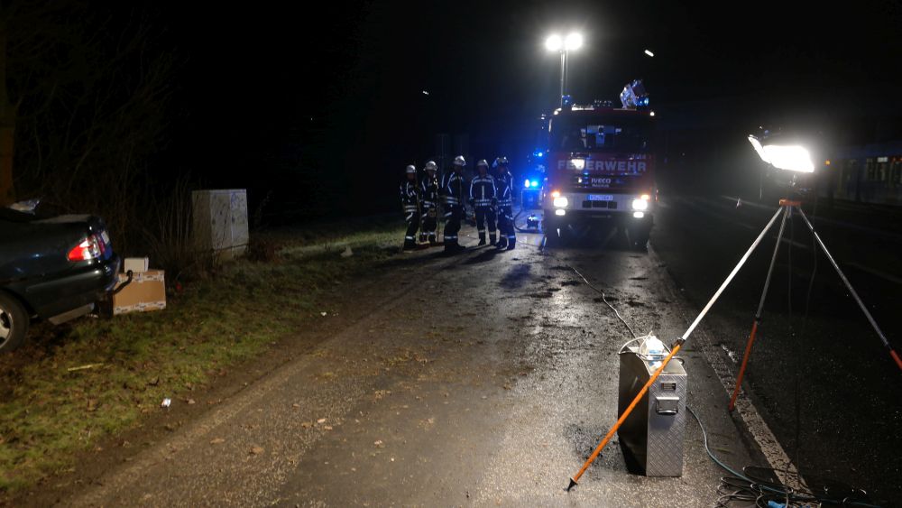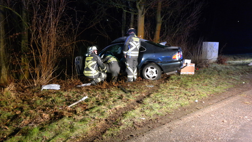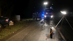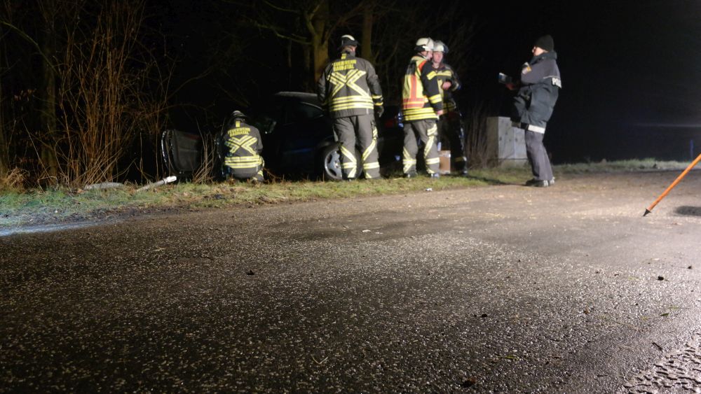 Der eintreffende Rettungsdienst konnte den Mann aus dem Fahrzeug befreien und transportierte ihn nach einer Erstversorgung an der Unfallstelle in eine Krankenhaus. Im Fahrzeug befand sich auch ein Hund, der augenscheinlich nur leicht verletzt wurde. Er wurde in einer Transportbox von der Polizei mitgenommen, um ihn Angehörigen zuzuführen. Auch die Feuerwehr hatte massive Probleme bei der Anfahrt auf Grund der Straßenverhältnisse. Die Landstrasse musste während der Unfallaufnahme komplett gesperrt werden. Wie sich heraus stellte roch der Mann nach Alkohol. Die Polizei konnte jedoch auf Grund seiner Verletzungen keinen Alkoholtest vornehmen. Jetzt bleibt abzuwarten, was die Blutprobe für ein Ergebnis liefert.