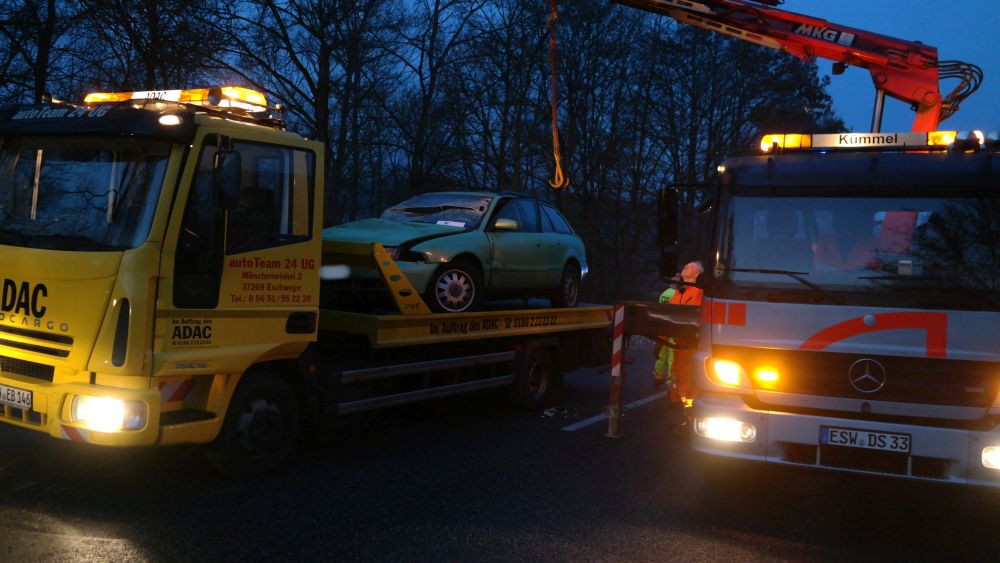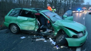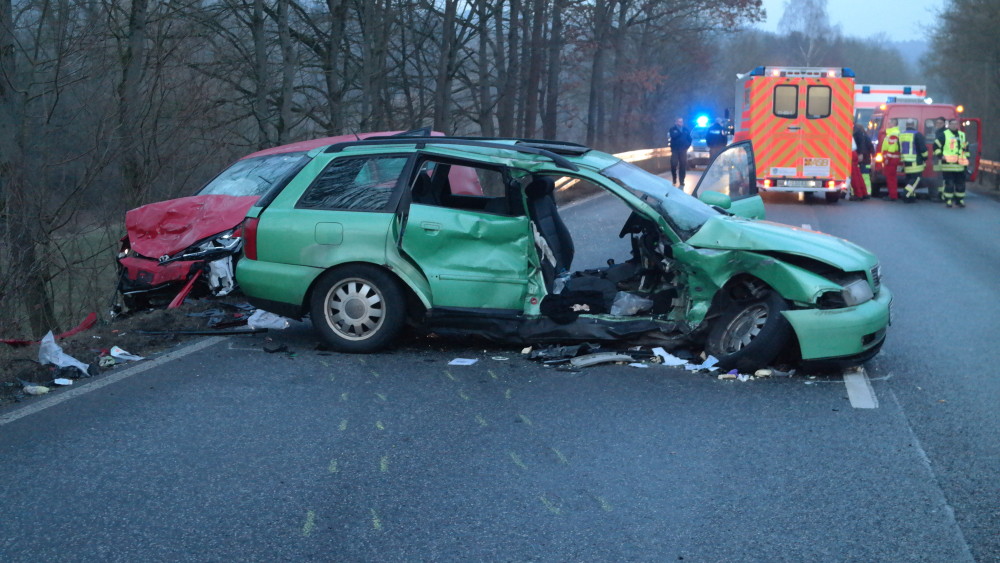 Waldkappel – Am Sonntagnachmittag gegen 16.40 Uhr kam es auf der B7 zwischen Waldkappel und Bischhausen zu einem schweren Verkehrsunfall. Nach ersten Informationen der Polizei stießen zwei PKW aus bisher nicht geklärter Ursache frontal zusammen. Beim Eintreffen der Feuerwehr war eine Person im Audi eingeklemmt und musste mit schwerem Gerät befreit werden.