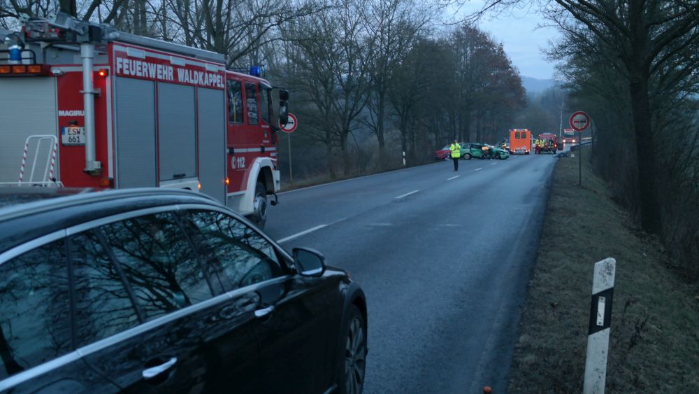 Bei dem Unfall wurden insgesamt drei Personen verletzt, davon eine Person so schwer, das sie nach einer Erstversorgung an der Unfallstelle mit dem Rettungshubschrauber Christoph 28 in ein Krankenhaus geflogen werde musste. Um die genaue Unfallursache klären zu können, wurde ein Gutachter in die Ermittlungen einbezogen. Die B7 musste über zwei Stunden voll gesperrt werden. Zum Einsatz kam neben Notarzt, Rettungsdienst und Polizei auch die Feuerwehr Waldkappel. (Es wird nachberichtet)