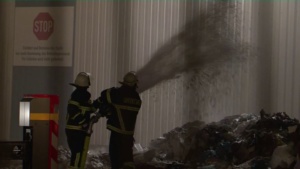 Die Brandbekämpfung wird sich noch einige Stunden hinziehen, da dieser sich sehr schwierig gestaltet. Die in Brand stehenden Ballen sind gepresst und müssen mühsam mittels Radlader und einem Bagger auseinander gezogen werden. Löschwasser ist hier keine große Hilfe, da dies nur ungenügend in das Papier eindringen kann. Aus diesem Grund müssen die Ballen mit Schaum abgelöscht werden. Auf Grund der starken Rauchentwicklung kann in der Halle nur unter Atemschutz gearbeitet werden.
