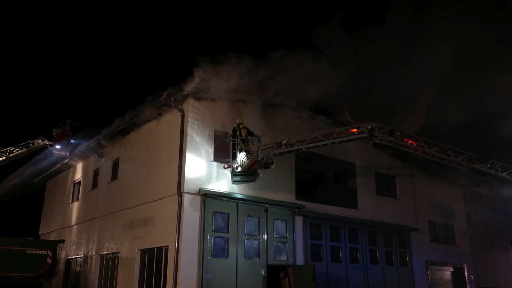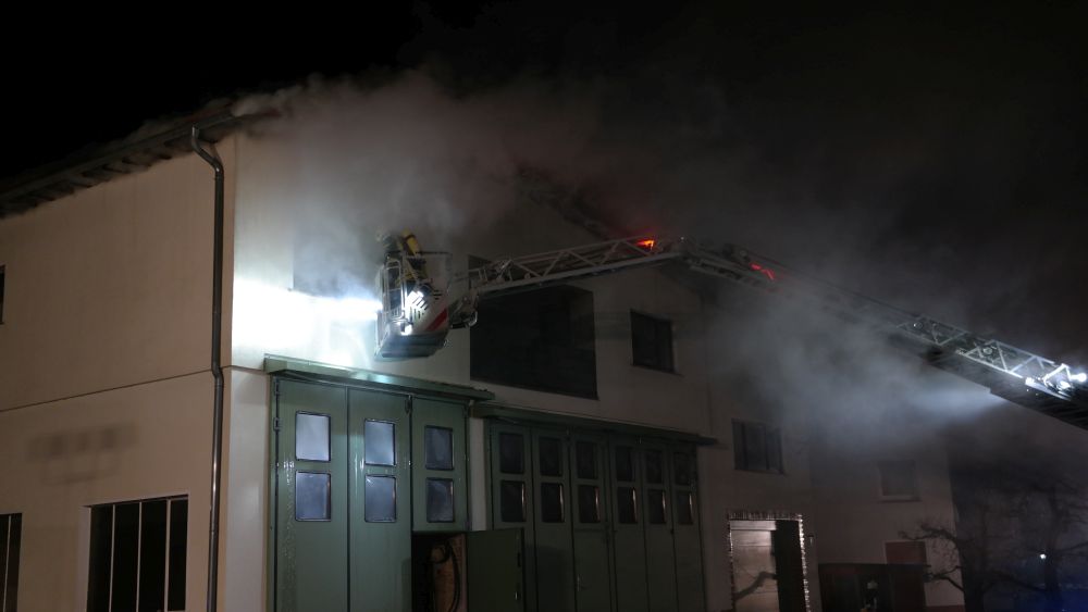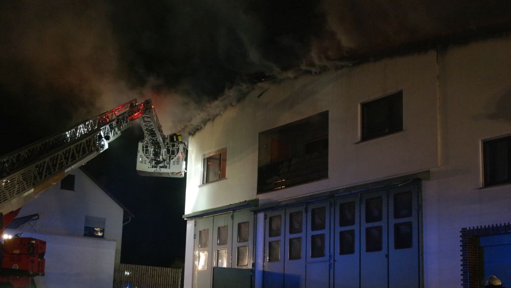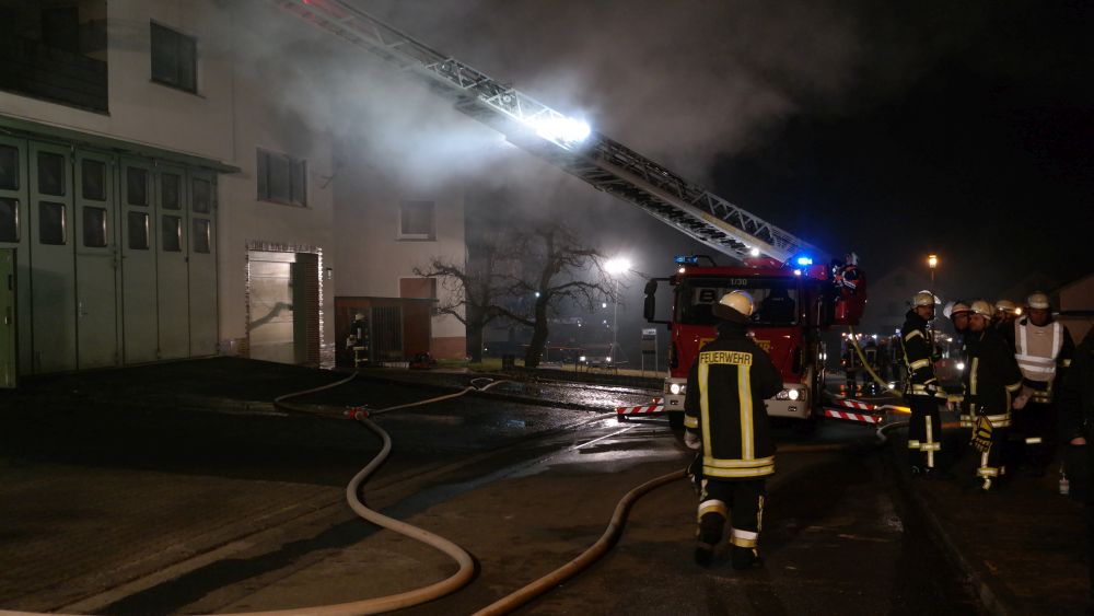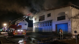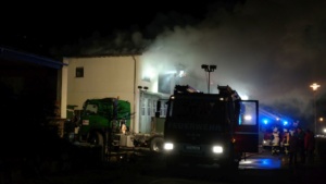 Meinhard – Am Montagnachmittag gegen 17.20 Uhr kam es in Jestädt im Werra Meisner Kreis zum Brand in einem Fuhrunternehmen. Beim Eintreffen der Feuerwehr war bereits dichter schwarzer Rauch erkennbar. Sofort wurden alle Feuerwehren aus der Umgebung von Meinhard nachalarmiert. Auch die Feuerwehr Eschwege und Bad Sooden Allendorf mit der Drehleiter wurden angefordert. Sehr schnell griff das Feuer um sich und die Flammen schlugen aus dem Dach.