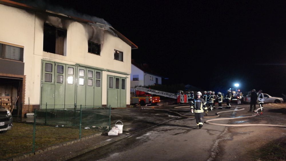 Zu Beginn hatte die Feuerwehr mit der Wasserversorgung Probleme, die jedoch mit der Nachforderung von Tanklöschfahrzeugen unter Kontrolle gebracht werden konnte, teilte uns Einsatzleiter Björn Reichelt mit. Nach ersten Erkenntnissen der Feuerwehr muss das Feuer im ersten Obergeschoss ausgebrochen sein. Der Grund hierfür ist bislang unklar. Das Haus besteht aus Wohngebäude und Werkstatt. Alle Personen die sich zum Brandausbruch im Haus befanden, konnten sich selbst in Sicherheit bringen. Die Feuerwehr musste in das Gebäude vordringen, um eine Zwischendecke zu öffnen. Hier hatten sich Glutnester gebildet, die abgelöscht werden mussten. Auf Grund der Witterungsverhältnisse wurde rund um die Einsatzstelle Salz gestreut, weil das Löschwasser eingefroren war. Am Einsatz waren rund 100 Kameraden und Kameradinnen der Ortsfeuerwehren und dem DRK beteiligt. Angaben zu einer möglichen Schadenshöhe konnten noch nicht gemacht werden.