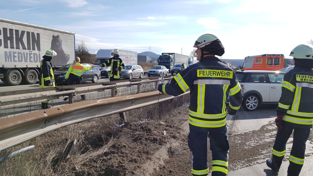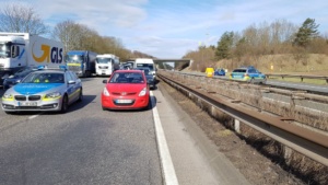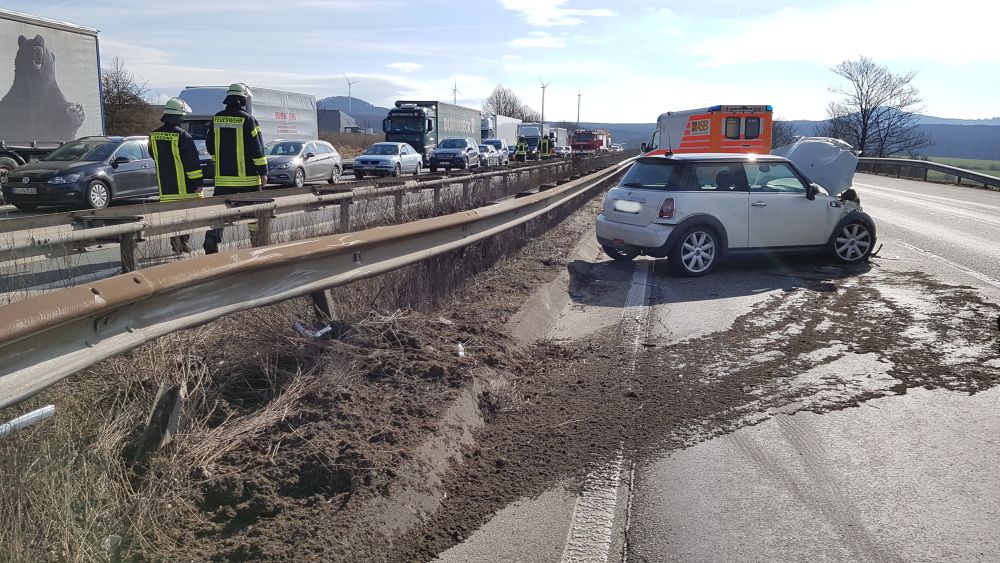 Zeitgleich krachte es auf der gegenüberliegenden Fahrspur in Richtung Dortmund. Es kam zu einem Auffahrunfall, weil Gaffer offensichtlich mehr Interesse an dem Unfall hatten, wie auf die Fahrbahn zu achten. Verletzt wurde hier zum Glück niemand. Kurzzeitig mussten beide Fahrtrichtungen voll gesperrt werden. Die Feuerwehr schob die Unfallfahrzeuge auf den Seitenstreifen, damit die Vollsperrungen aufgehoben werden konnten. Zum Einsatz kam neben Polizei und Rettungsdienst die Feuerwehr Breuna. Auf Grund der beiden Unfälle kam es zu erheblichen Behinderungen und Rückstaus.