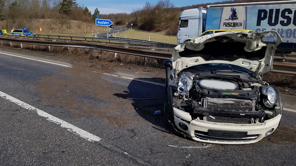 Breuna – Zu einem Verkehrsunfall mit Personenschaden kam es am Dienstagvormittag gegen 10.00 Uhr auf der A44 zwischen den Anschlussstellen Breuna und Zierenberg. Nach ersten Erkenntnissen der Polizei befuhr eine 24-jährige Frau die A44 in Fahrrichtung Kassel. Kurz nach der Auffahrt Breuna zog offensichtlich ein LKW auf die linke Spur. Die Frau erschreckte sich, krachte mit Ihrem Fahrzeug in die Leitblanke und kam auf der linken Spur zum stehen. Der LKW setzte seine Fahrt fort, weil er vermutlich den Unfall nicht mitbekommen hat. Eine Berührung der Fahrzeuge gab es nicht. Die Feuerwehr Breuna versorgte die verletzte Frau bis zum Eintreffen des Rettungsdienstes und sicherte die Unfallstelle ab.