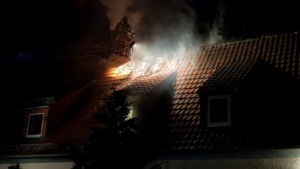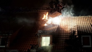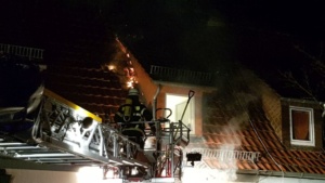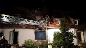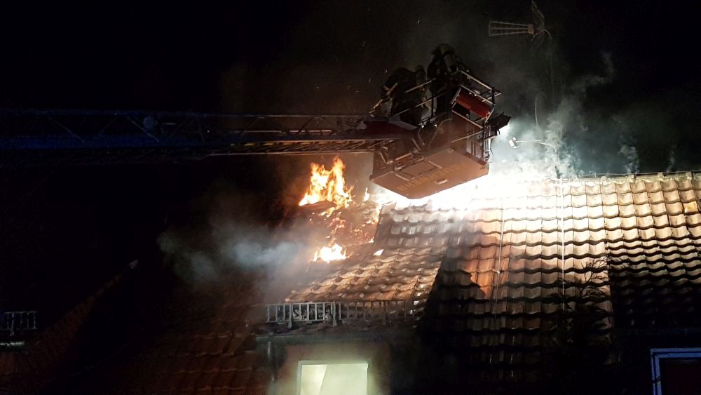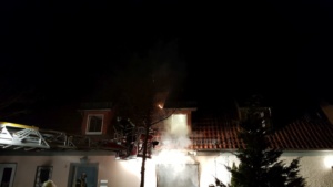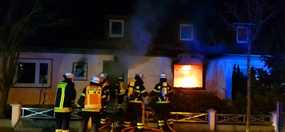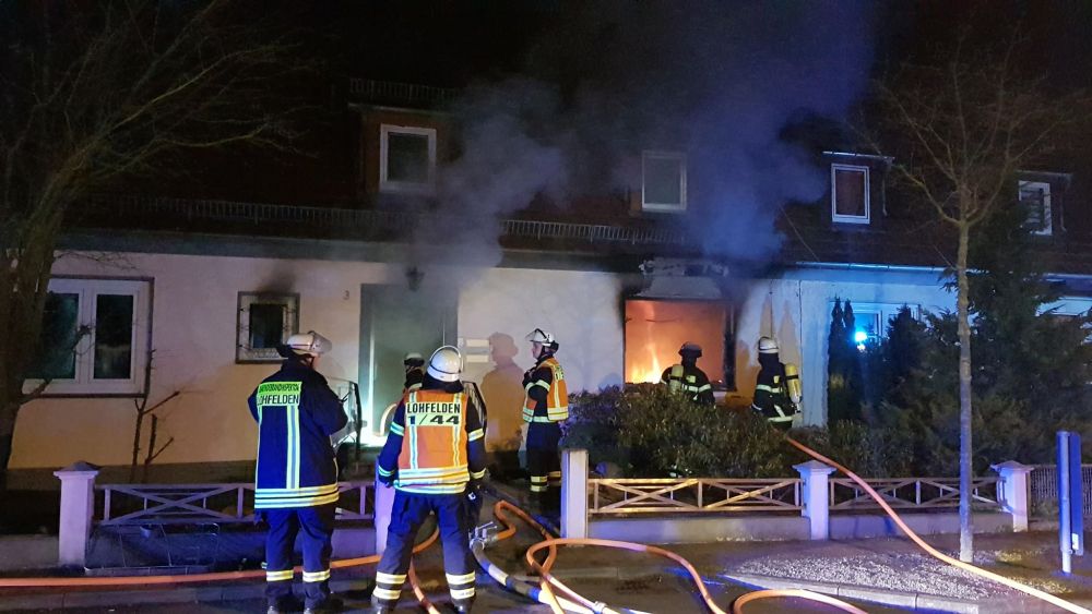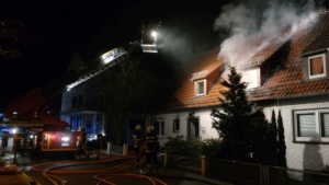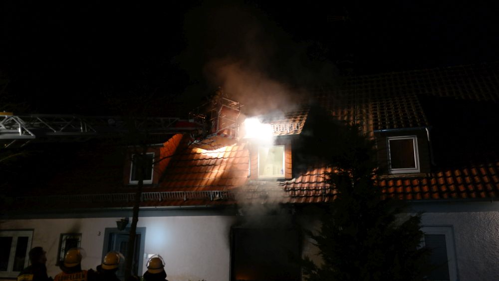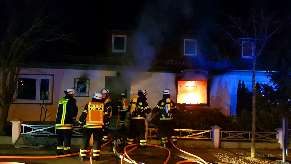 Lohfelden – In der Nacht zum Samstag kam es gegen 01.35 Uhr zu einem Wohnhausbrand in Lohfelden am Feldrain. Nach ersten Informationen der Feuerwehr ist der Brand im unteren Bereich des Hauses ausgebrochen. Beim Eintreffen der ersten Einsatzkräfte schlugen bereits die Flammen aus dem Fenster und griffen auf den darüber liegenden Dachstuhl über.