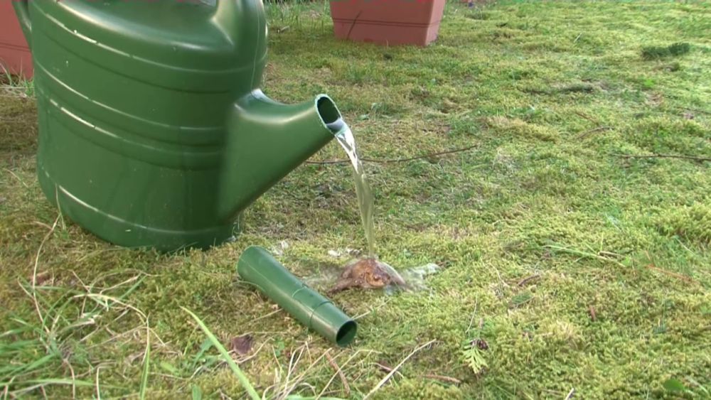 Wolfhagen – Eine etwas kuriose Tierrettung gab es am Sonntagmittag in Wolfhagen. Familie H. war gerade dabei die Pflanzen zu gießen, als man feststellte das kein Wasser mehr aus der Kanne kam. Schnell stellte man fest, das ein Frosch im Auslass (Tülle) feststeckte. Zunächst versuchte man mit einem Stock, der vorher mit Papiertuch, Watte und Wasser weich gemacht wurde, den Frosch zu befreien. Der Versuch Ihn damit nach hinten zu schieben schlug jedoch fehl, denn der Druck könnte das Tier möglicherweise verletzen.