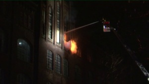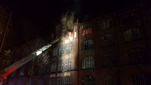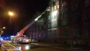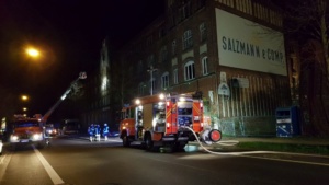 Kassel – Am späten Samstagabend gab es schon wieder einen Brand im Salzmanngebäude in Kassel. Gegen 22.15 Uhr wurde ein Feuer im vierten Obergeschoss des Gebäudes gemeldet. Beim Eintreffen der Feuerwehr schlugen die Flammen bereits aus den Fenstern. Die Einsatzkräfte konnte den Brand sehr schnell mittels Drehleiter und einem Innangriff unter Atemschutz über das Treppenhaus unter Kontrolle bringen.