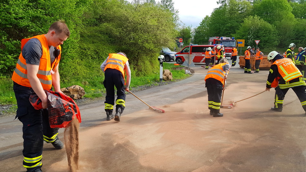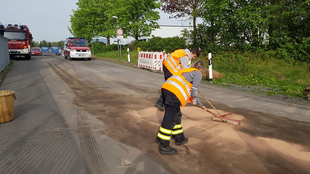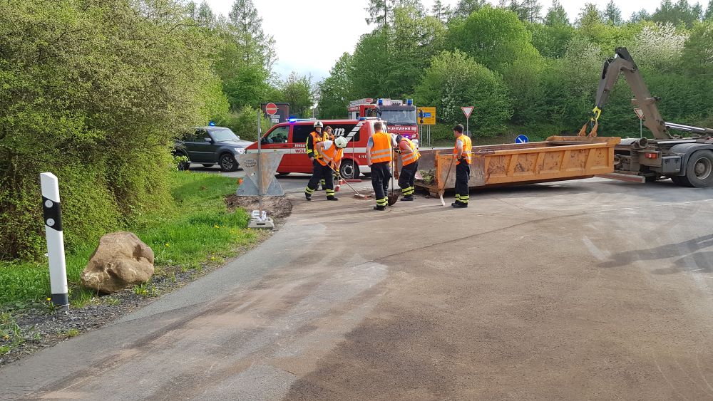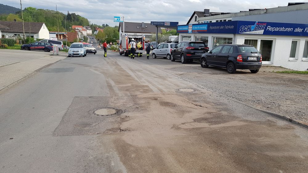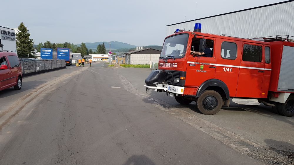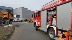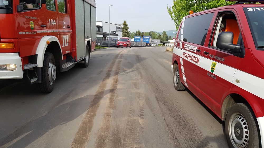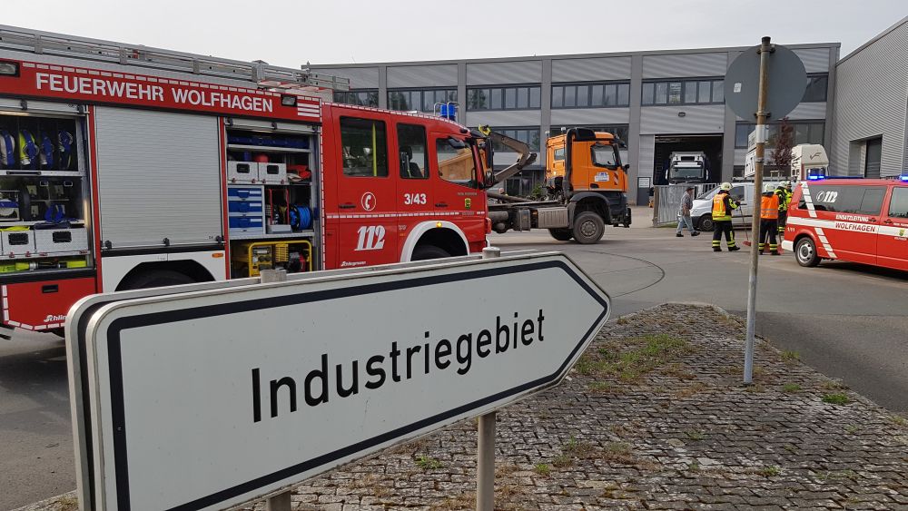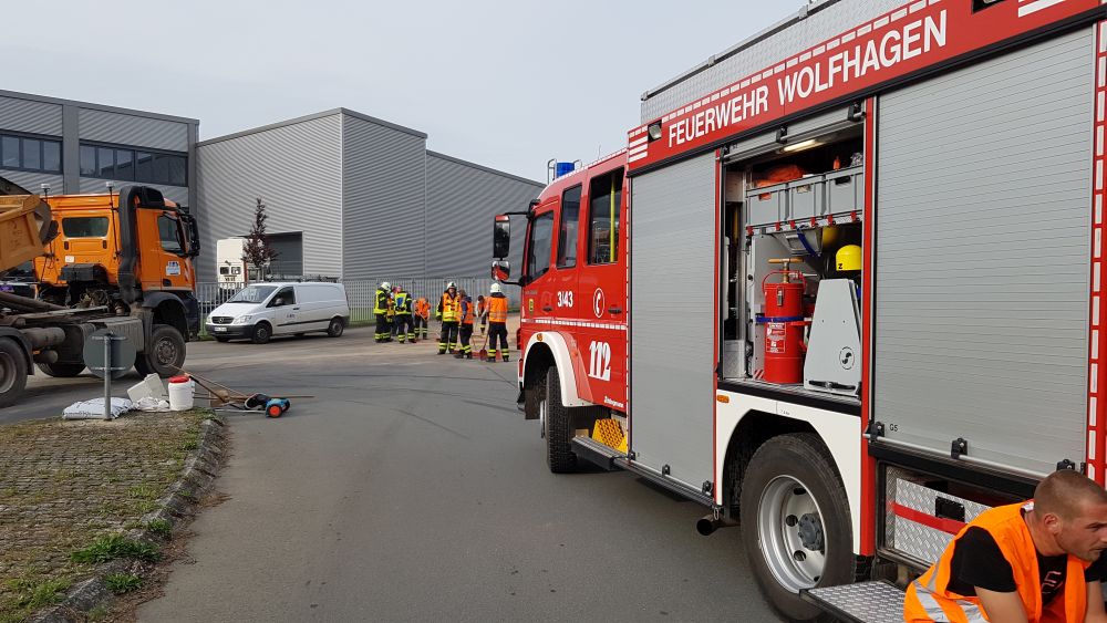 Er fuhr rund 500 Meter weiter in die Hans Böckler Strasse bis zu seiner Abladestelle. Erst hier bemerkte er den Schaden auf dem Firmengelände. Die Feuerwehren aus Wolfhagen, Bründersen, Niederelsungen und Nothfelden waren mit insgesamt 50 im Einsatz. Die Bunsenstrasse, sowie die Hans Böckler Strasse mussten komplett gesperrt werden.