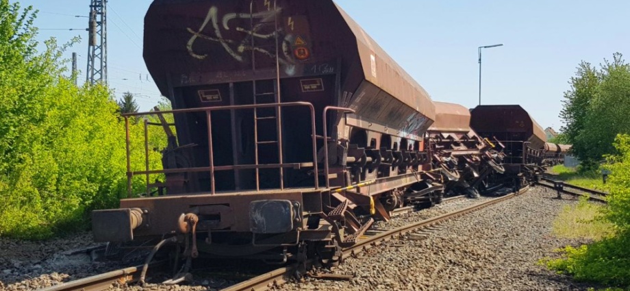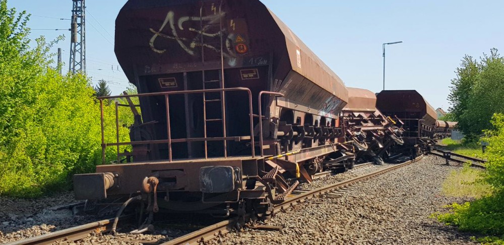 Kirchhain (Kreis Marburg-Biedenkopf) – Zum Glück ohne Verletzte, ereignete am Freitagmorgen, gegen 9 Uhr, ein Bahnunfall bei Kirchhain. Ein Güterzug, der hinter Kirchhain in Richtung Nieder-Ofleiden fahren wollte, entgleiste mit den hinteren vier Waggons, offensichtlich beim Überfahren einer Weiche. Ein Wagen kippte dabei um. Beschädigungen gab es am Zug, dem Bahnkörper sowie an der Signaltechnik. Unfallbedingt kam es am Bahnüberganges in der Niederrheinischen Straße zu Behinderungen.