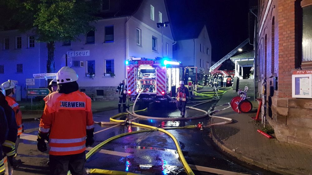 Wahlsburg – Am Sonntagabend gegen 20.45 Uhr kam es in Vernawahlshausen (Hessen) nahe der Grenze zu Niedersachen zum Brand eines Wohnhauses. Das Fachwerkhaus steht leer, wird jedoch als Werkstatt benutzt. Ein großes Problem war die enge Bebauung im Dorf, doch die Feuerwehr konnte auf Grund des schnellen Einsatzes, der auch Kräfte aus Niedersachen einschloss, ein Übergreifen auf weitere Wohnhäuser verhindern.