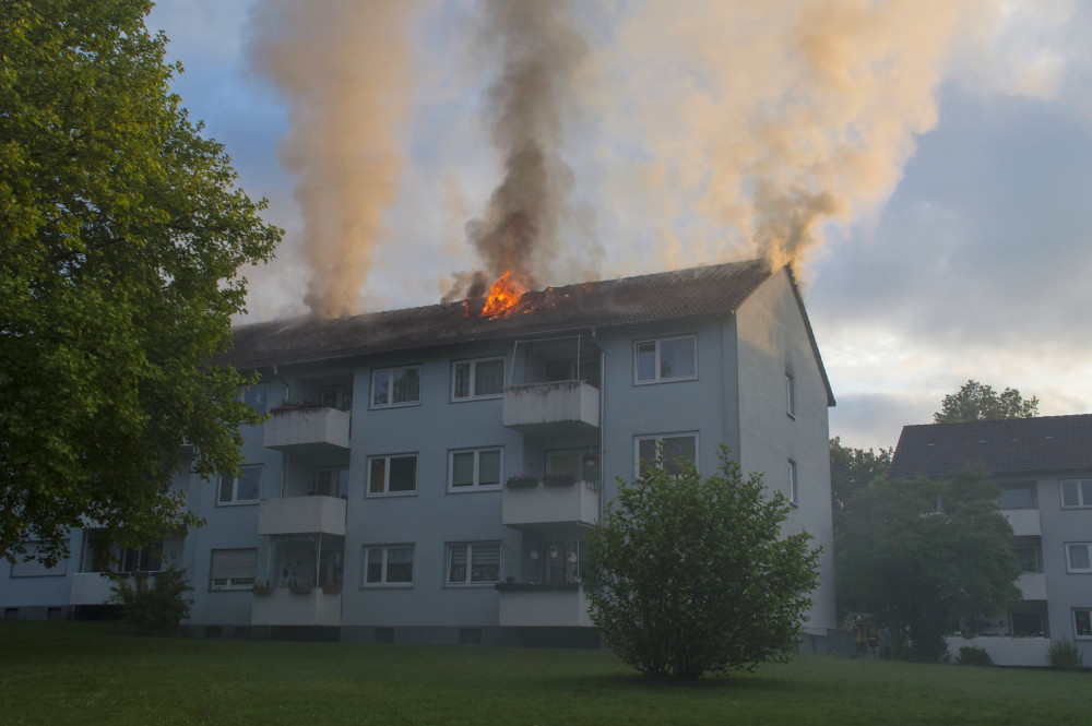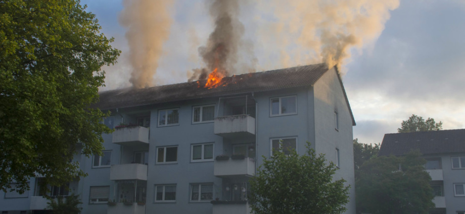 Baunatal – Am Mittwoch um kurz nach 6 Uhr wurde die Feuerwehr Baunatal mit dem Stichwort „Brand im Gebäude, Menschenleben in Gefahr“ alarmiert. Bei Eintreffen der Feuerwehr in der Akazienallee an dem Mehrfamilienhaus war schon starke Rauchentwicklung am Dachstuhl des Gebäudes erkennbar. Nur wenige Augenblicke danach zündete die Dachhaut durch und es schlugen Flammen aus dem Dach. Die Bewohner konnten sich selbständig ins Freie retten, bzw. wurden durch die zuerst eintreffende Polizei evakuiert.