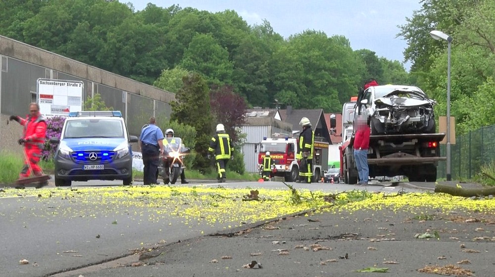 Frankenberg – Zu einem Alleinunfall kam es am Mittwochnachmittag in der Ortsdurchfahrt von Frankenberg-Schreufa. Ein mit drei Personen besetztes Fahrzeug war in Richtung Frankenberg unterwegs, als der Pkw-Fahrer kurz vor Ortsausgang aus bislang unbekannten Gründen die Kontrolle über sein Fahrzeug verlor, die Fahrbahn querte und gegen einen Baum krachte.