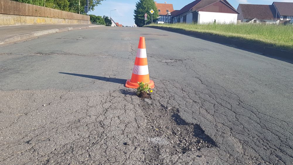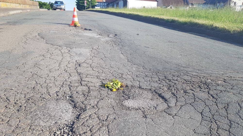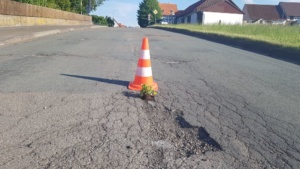 Für die Blumenpflege scheint zudem auch gesorgt zu sein, Anwohner sorgen für das notwendige Nass. Autofahrer die Viesebeck durchquert haben sind außerdem positiv gestimmt, denn die Schlaglöcher, welche zudem mit Verkehrshütchen abgesichert wurden, sind jetzt endlich sichtbar. Ein Anwohner teilte uns mit, dass die Strasse wohl erst 2019 gemacht werden soll, obwohl 2017 im Gespräch war, jedoch Sanierungsmassnahmen von Wolfhager Strassen wichtiger waren. Seit 2015 müssen rund 300 km Kreisstrassen erneuert werden, jedoch sind die Gelder knapp und die Haushaltsvorgaben machen der einen oder anderen Gemeinde einen Strich durch die Rechnung. Ein weiterer Anwohner erklärte uns, wenn das auch 2019 wieder nichts wird, werden wir Büsche pflanzen.