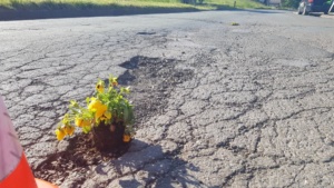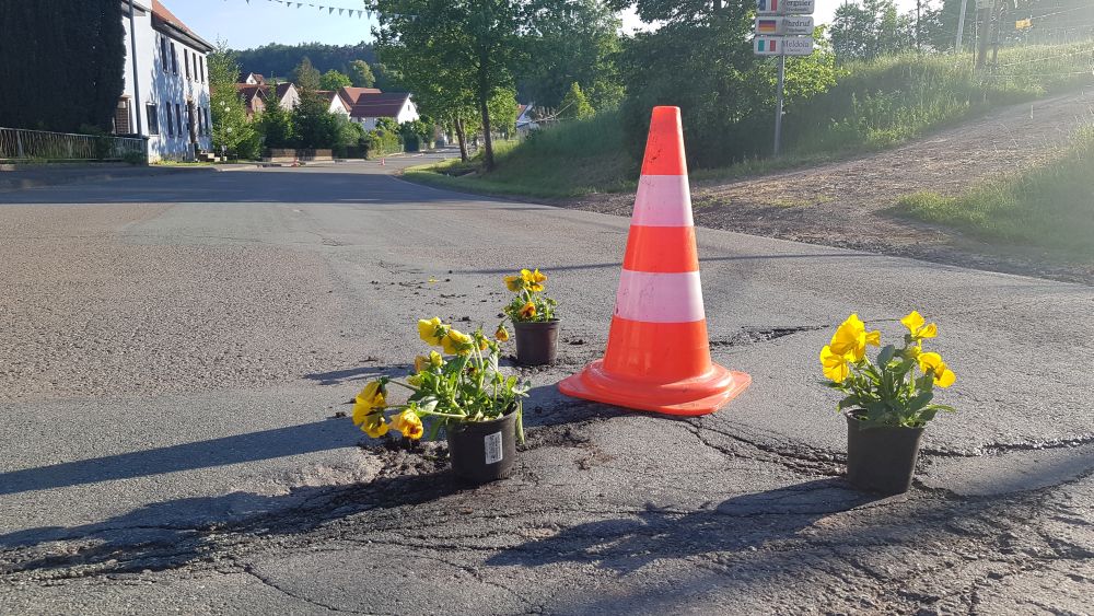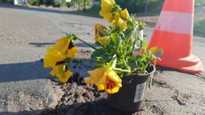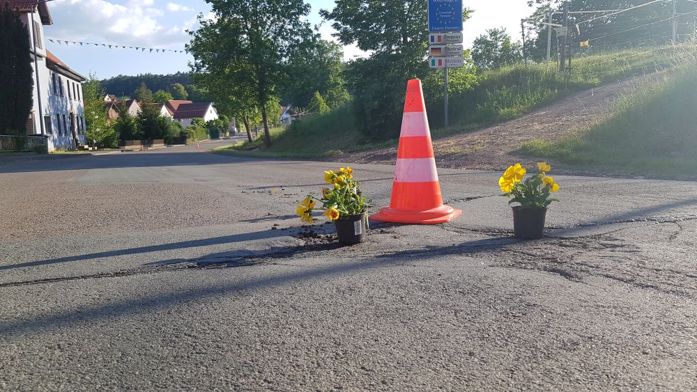 Viesebeck – Für eine etwas ungewöhnliche Protestaktion sorgten am Sonntagnachmittag offensichtlich Anwohner des Wolfhager Ortsteil Viesebeck. Aufgrund des seit längerem anhaltendem sehr schlechten Straßenzustandes der Ortsdurchfahrt (Hauptstrasse) wurden kurzerhand 22 Schlaglöcher mit Stiefmütterchen bepflanzt, um auf die offensichtlichen Missstände aufmerksam zu machen. Wer die Blumen eingepflanzt hat und wie lange die Protestaktion anhält, ist derzeit unbekannt. Fest steht die Aktion fand in der Nacht statt, wer es war darüber schweigt man sich aus.