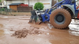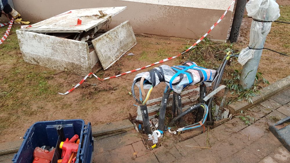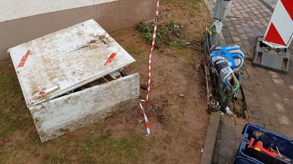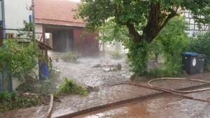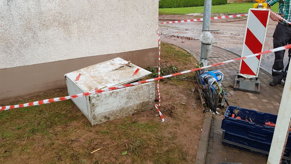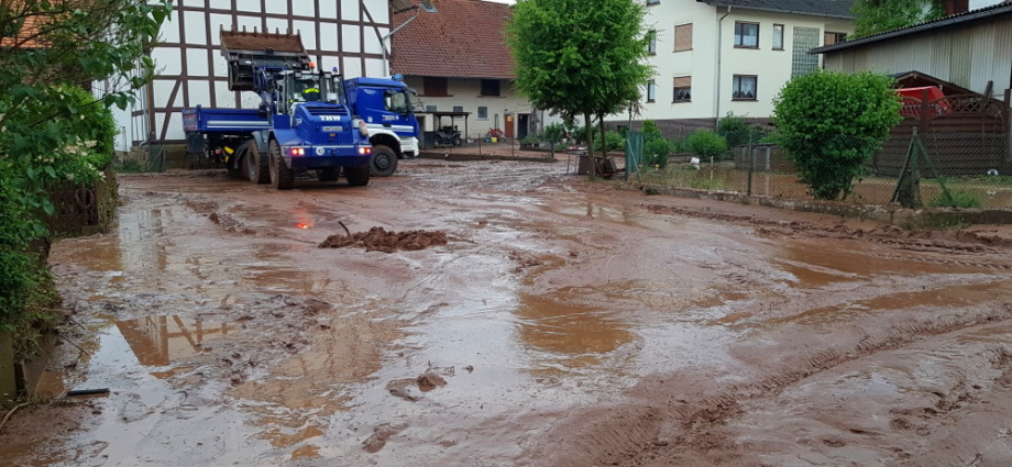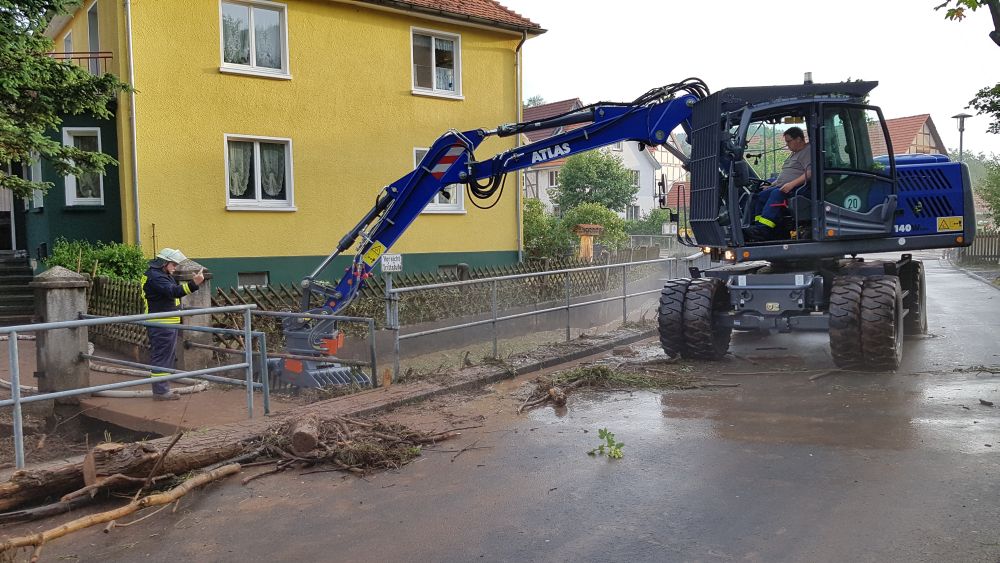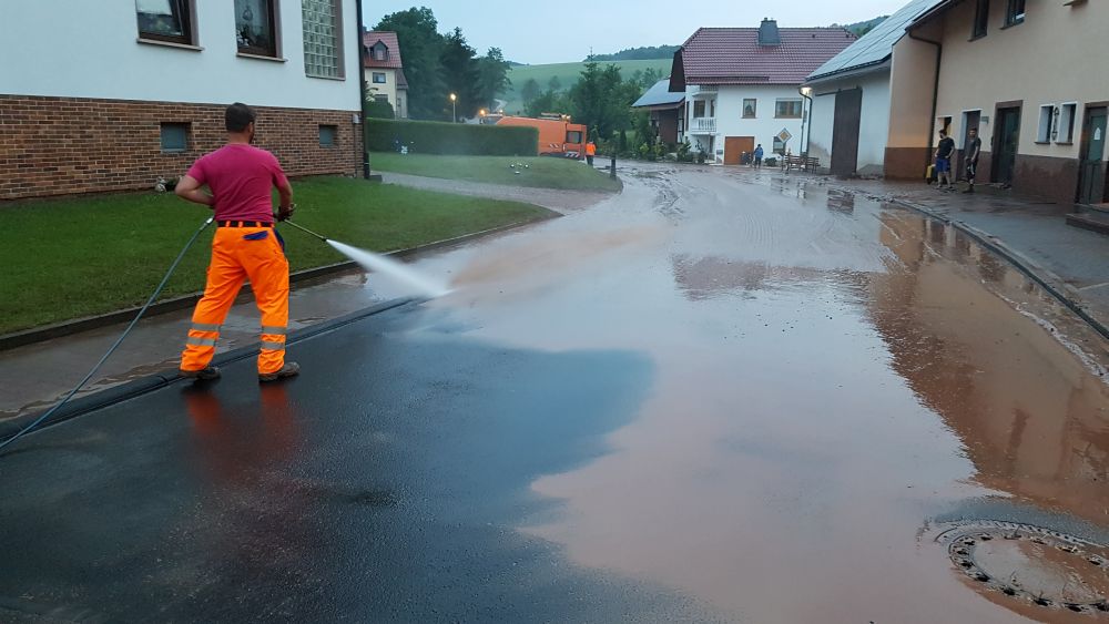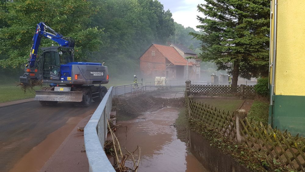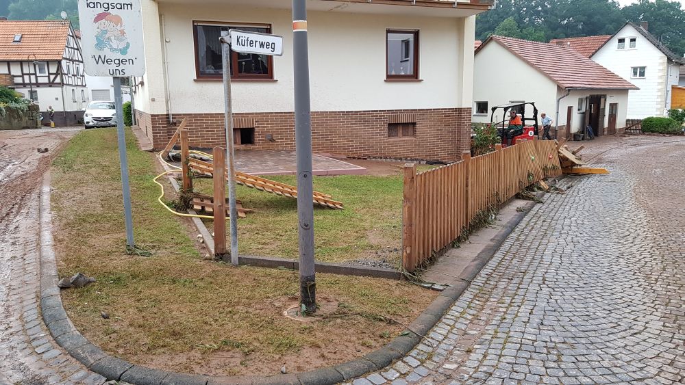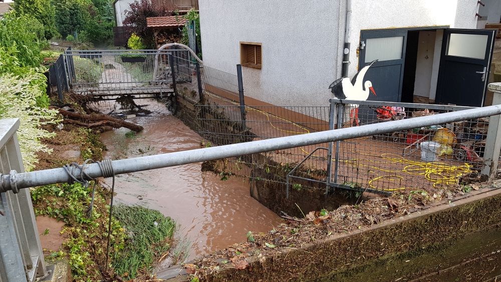 Zum Glück konnten sich die Personen selbst befreien und sind nach letzten Informationen wohl auf. Rund 30 cm hoch ist der Schlamm den das Unwetter hinterlassen hat. Überall drang die braune Brühe ein und sorgte für ein absolutes Chaos. Keller liefen voll und Oeltanks drohten davon zu schwimmen. Trotz der massiven Beschädigungen ist es nahezu ein Wunder das niemand bei dem Unwetter gesundheitlichen Schaden davon trug. Jetzt zeigte sich nach dem schlimmen Unwetter, was Nachbarschaft bedeutet. Jeder half mit Schaufeln, Treckern, Baggern oder auch den bloßen Händen das Chaos unter Kontrolle zu bringen. Jetzt ist das Unwetter vorbei, in ein paar Tagen werden auch die Aufräumarbeiten wieder überschaubar sein, jedoch die Natur wird hier eher weniger Interesse zeigen, denn auf viel Sonnenschein folgen in der Regel auch schwere Unwetter. Vor Ort waren rund 100 Einsatzkräfte von Feuerwehr, THW und dem Roten Kreuz.