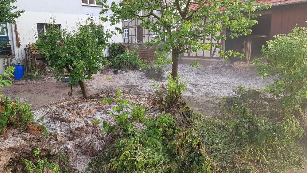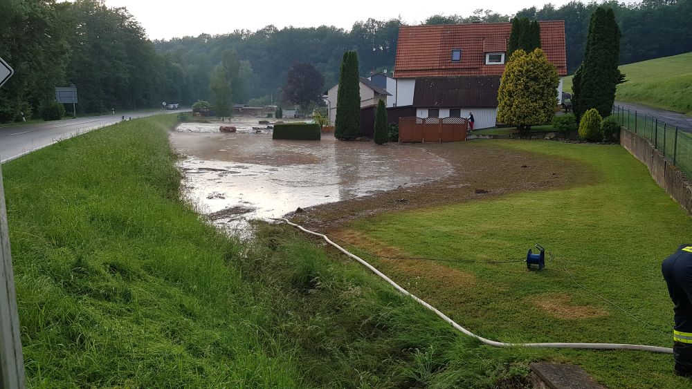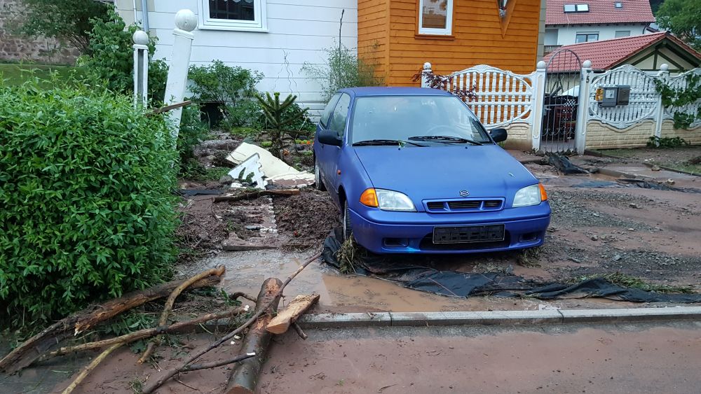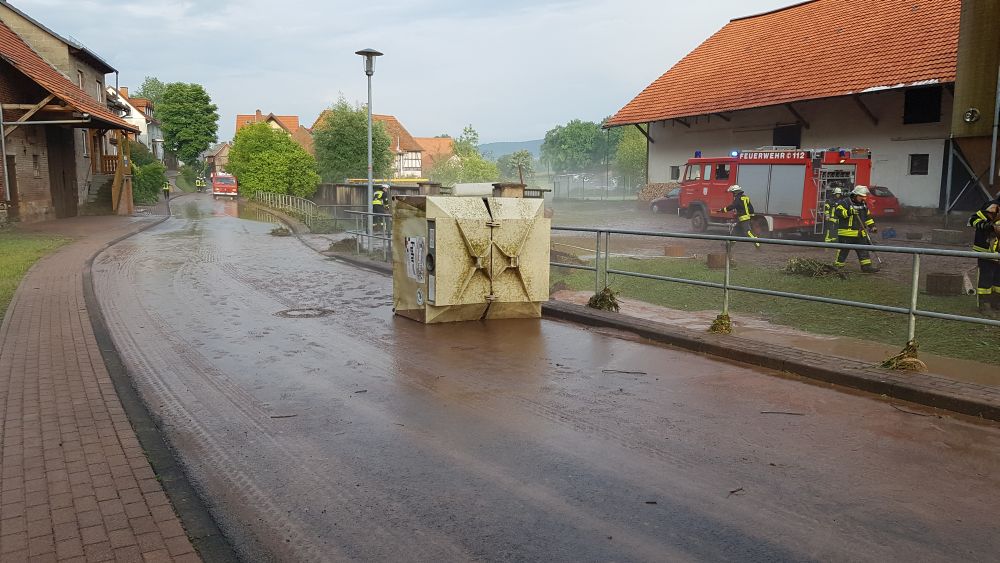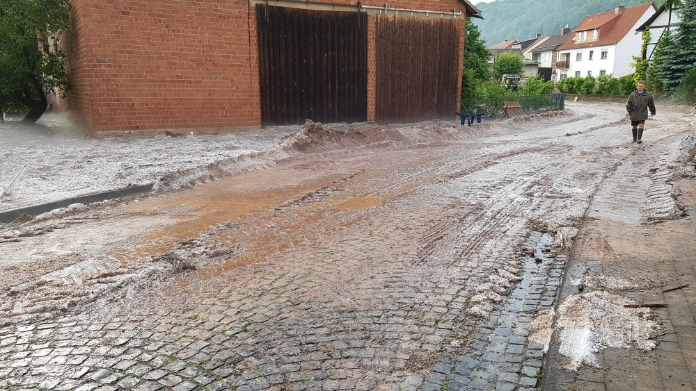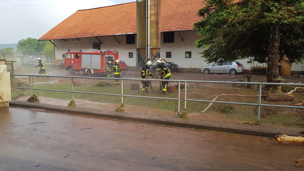 Waldkappel – Schwere Unwetter zogen am späten Sonntagnachmittag über Nordhessen. Besonders betroffen war der Werra Meissner Kreis im Raum Waldkappel. Mit Gewitter, Hagel und Überflutungen stellte das Wetter die letzten schönen Tage den Anwohnern in Hetzerode, Mäckelsdorf und Friemen in Rechnung. Die Menschen wissen wie es ist, wenn Unwetter über den Ort ziehen, jedoch so schlimm wie diesmal war es noch nie, so ein Anwohner. Die Feuerwehr hatte mit 30 Einsatzstellen an drei Orten zu kämpfen. Gleich zu Beginn des Einsatzes gab es eine erschreckende Meldung, das sich noch Menschen in einem PKW befanden, der von den Schlammmassen mitgerissen wurde.