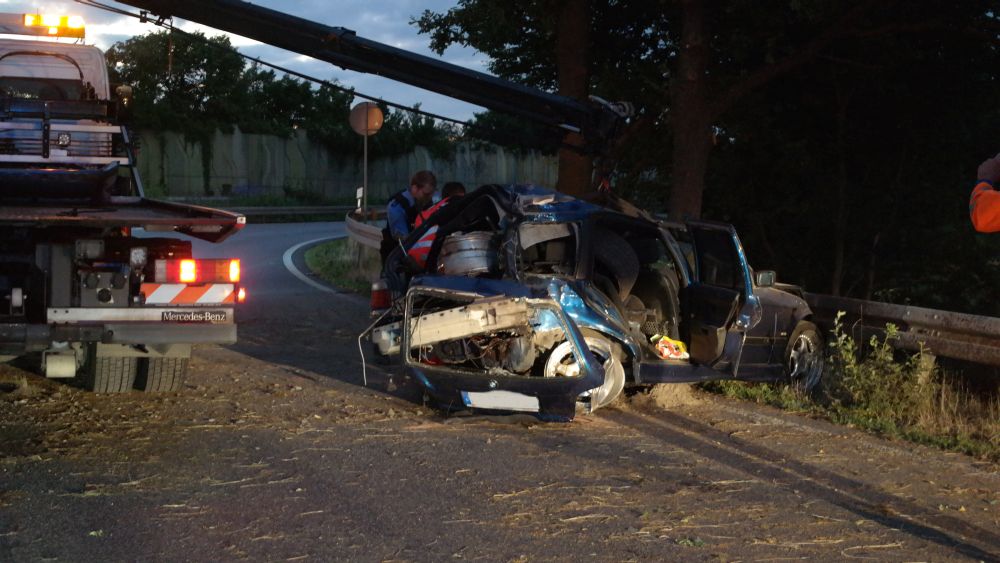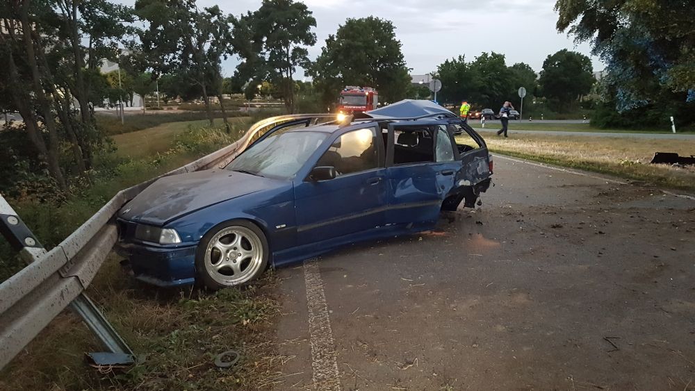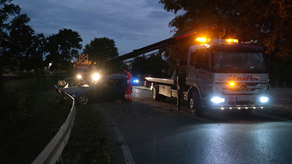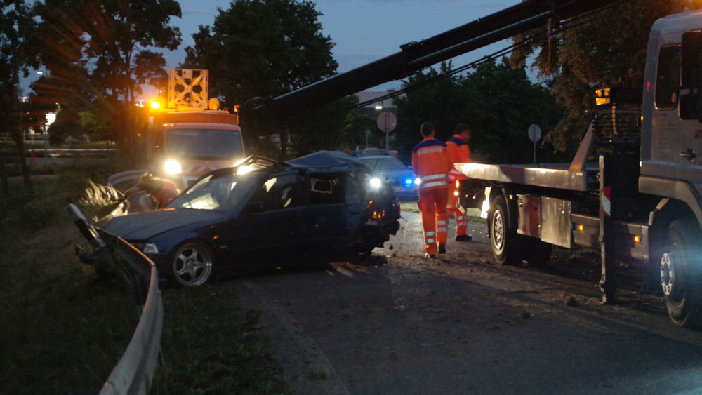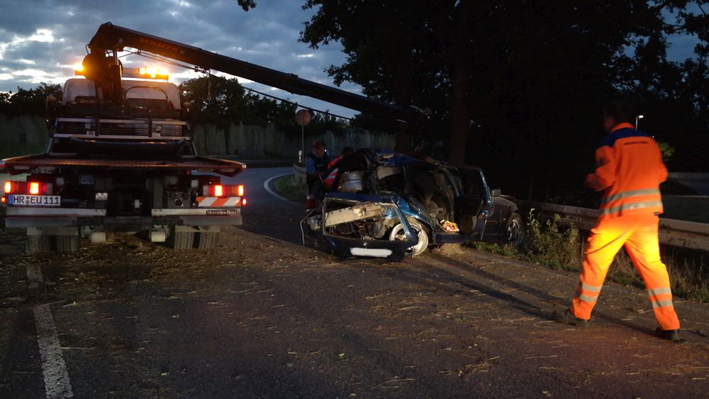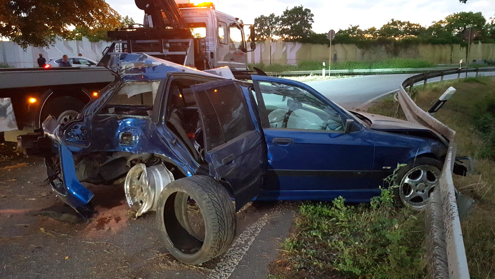 Baunatal – Zu einem schweren Verkehrsunfall kam es am Montagabend gegen 21.10 Uhr auf der A49 im Bereich der Auf- und Abfahrt Baunatal Süd in Fahrtrichtung Kassel. Nach ersten Informationen der Polizei überholte eine 55-jährige Frau im Bereich einer Steigung einen LKW und zog dazu auf die linke der beiden Fahrspuren. Hierbei kam es offensichtlich zu einer Kollision mit einem BMW, der von einem 26-jährigen Mann aus Kassel gelenkt wurde. Der Fahrer verlor hierdurch die Kontrolle über sein Fahrzeug fuhr in die Ausfahrt, krachte gegen ein Verkehrsschild, schleuderte dann gegen einen Baum, um dann letztendlich an einer Leitblanke in der Auffahrt Richtung Kassel zum stehen zu kommen.