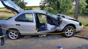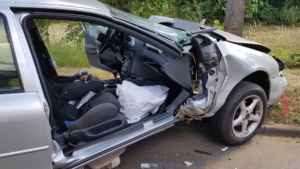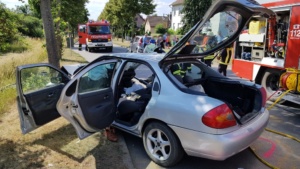 Calden – Zu einem schweren Verkehrsunfall kam es am Mittwoch Nachmittag gegen 15.40 Uhr auf der B7 am Ortseingang von Kassel-Calden. Auf Grund von Mäharbeiten musste der Fahrer eines Suzuki nach links ausweichen. Nachdem er wieder eingeschert war, kam von hinten ein Ford Mondeo mit wesentlich höherer Geschwindigkeit und streifte den Suzuki. Der Unfallfahrer verlor dann die Kontrolle über sein Fahrzeug, kam nach links von der Fahrbahn ab und krachte frontal gegen einen Baum.