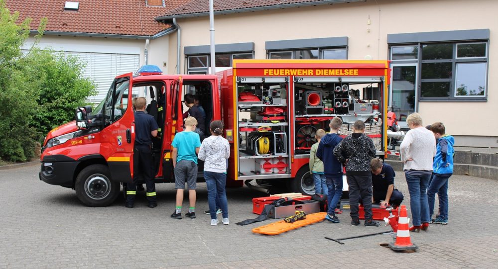 Diemelsee – Die Ferien stehen kurz bevor und die Abschlussklassen haben bereits die Schule verlassen. Die letzte Woche vor den großen Sommerferien wird meistens mit Klassenräume säubern, Bücher abgeben usw. verbracht und es kann nicht schnell genug Freitag werden, bis die Ferien beginnen. Anders ist es in diesem Jahr an der Mittelpunktschule in Adorf, die Jugendfeuerwehr Diemelsee kam zu Besuch.