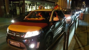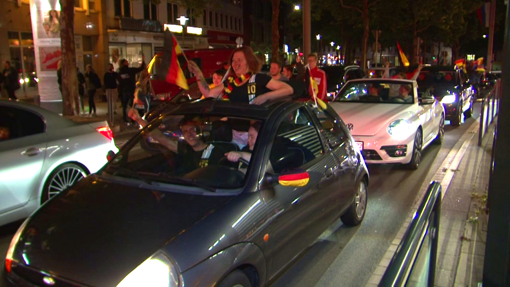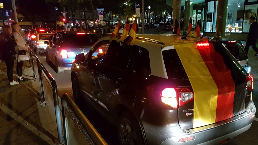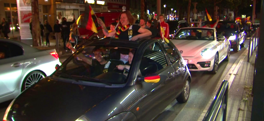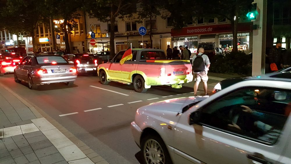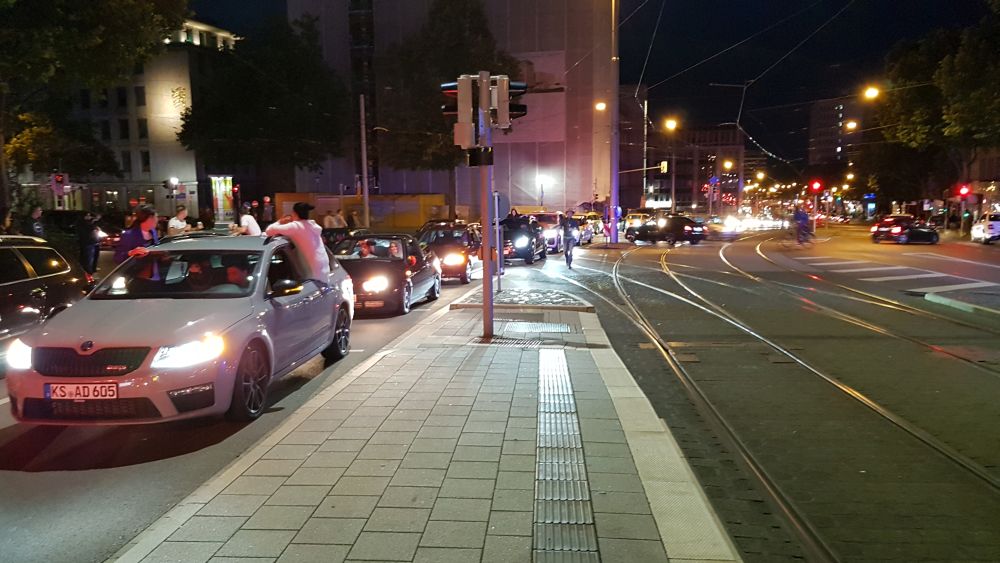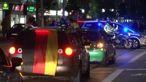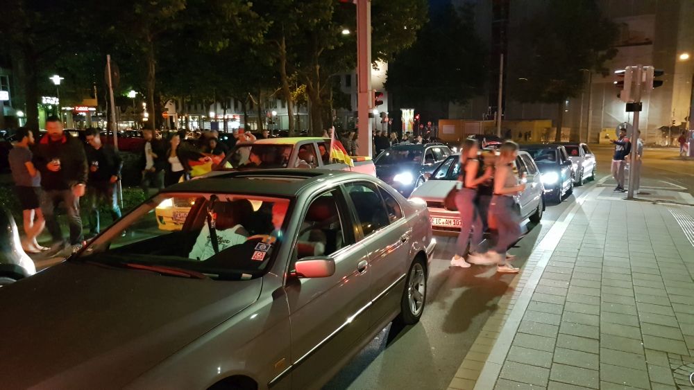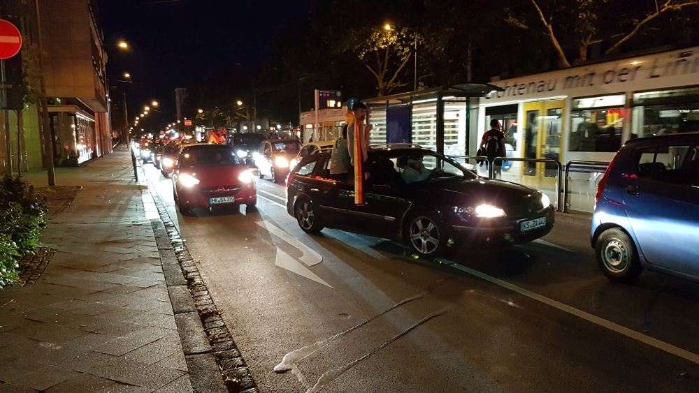 Kassel – In den letzten Sekunden erhöht Deutschland auf 2:1 und gewinnt somit gegen Schweden. Ein Grund für viele dieses letzte rettende Tor zu feiern. Mit viel Lärm und Autohupen zieht eine lange Schlange von Fußballbegeisterten durch Kassel. Rund zwei Stunden dauert das Spektakel an dem sich hunderte Fahrzeuge teilnahmen. Alles blieb friedlich und es kam nach letzten Informationen zu keinen Verletzen.