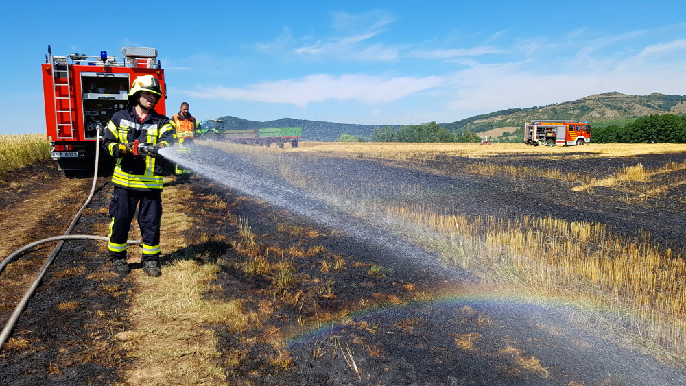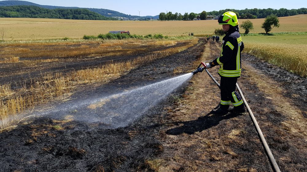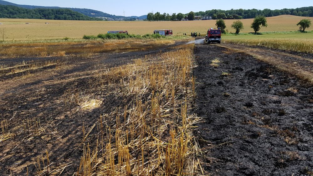 Gut Bodenhausen – Gegen 11.30 Uhr konnte die Feuerwehr Habichtswald vom Einsatz in Dörnberg (- wir berichteten -) einrücken. Rund 150 Minuten später, wurden die Einsatzkräfte aus Habichtswald und Zierenberg erneut alarmiert. Auf der L3220 in Höhe Gut Bodenhausen kam es gegen 14 Uhr zu einen Feldbrand. Die Feuerwehr konnte ein größeres Ausbreiten verhindern, dennoch brannte eine Fläche von etwa 1.000 Quadratmeter ab. Die Brandursache ist unklar. Insgesamt war die Feuerwehr Zierenberg und Habichtswald mit 77 Einsatzkräften im Einsatz.