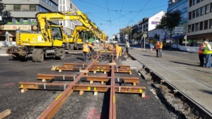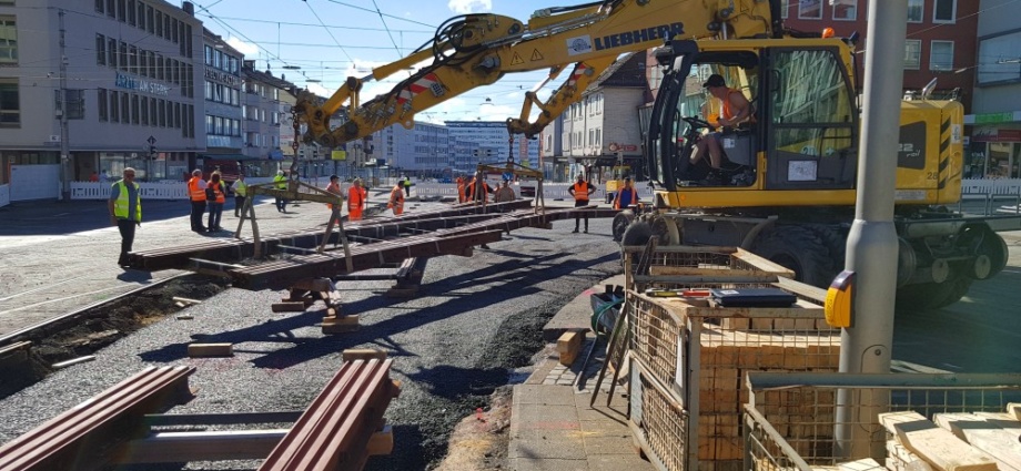 Kassel – Mit Anfang der Sommerferien in Hessen beginnt auch ein Großprojekt für die KVG in Kassel. Am Stern soll ein neues Gleiskreuz entstehen, das bereits mit dem Ende der Ferien fertig gestellt sein soll. 20 Jahre ist die Anlage alt und muss nun auf Grund von Abnutzung ausgewechselt werden. Trotz der langen Zeit ist die Anlage noch in einem akzeptablen Zustand, doch die immer wieder anfallenden Reparaturarbeiten sind wirtschaftlich nicht mehr angemessen. Um ein solches Projekt überhaupt durchführen zu können, war eine effektive Planung bis ins Detail nötig.