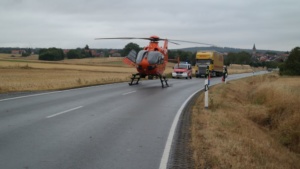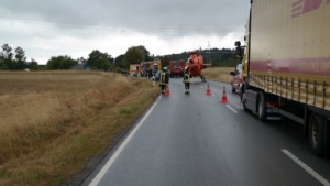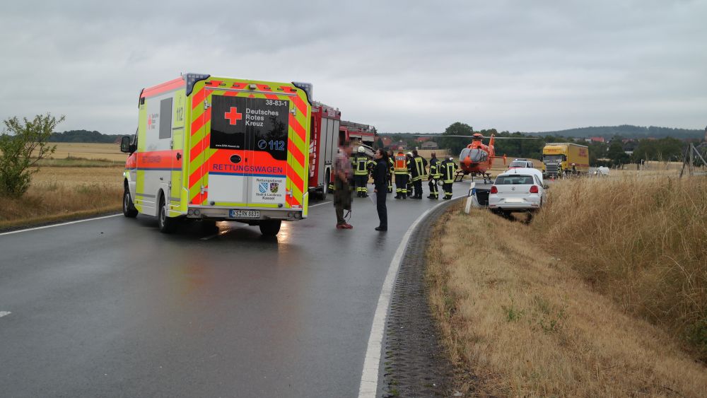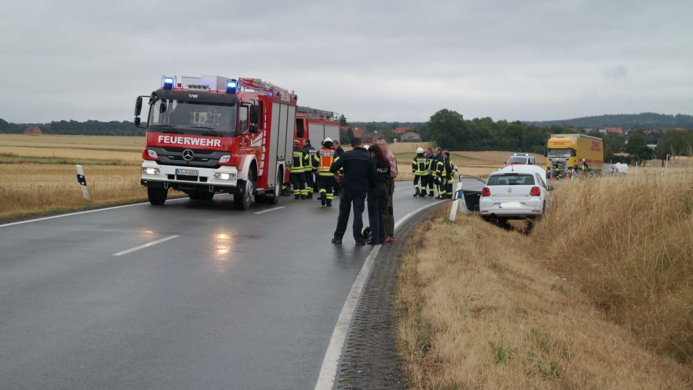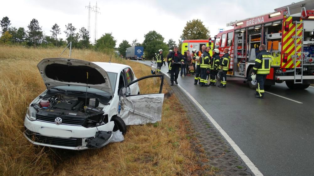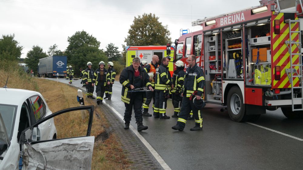 Die Feuerwehr Breuna befreite die Frau, die im Fußraum eingeklemmt war. Nach einer Erstversorgung an der Unfallstelle wurde sie dann ins Krankenhaus nach Warburg eingeliefert. Der LKW-Fahrer blieb unverletzt. Der Sachschaden wird auf rund 10.000 Euro geschätzt. Die Landstraße war für rund 45 Minuten voll gesperrt.