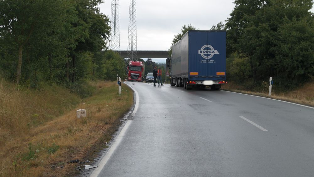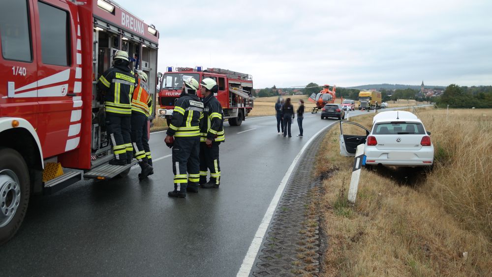Breuna – Am Dienstag gegen 16 Uhr kam es auf L3080 (Volkmarser Straße) zu einem Verkehrsunfall zwischen PKW und LKW. Eine 47-Jährige Frau aus dem Landkreis Kassel befuhr die Landstraße von Volkmarsen in Richtung Breuna. Kurz vor Breuna in einer Rechtskurve kam die Frau mit ihrem PKW in den Gegenverkehr und streifte einen entgegen kommenden LKW. Das Fahrzeug der Frau kam hierdurch nach rechts von der Fahrbahn ab und landete anschließend in einem Graben.