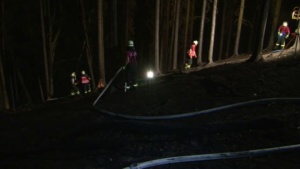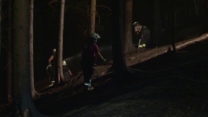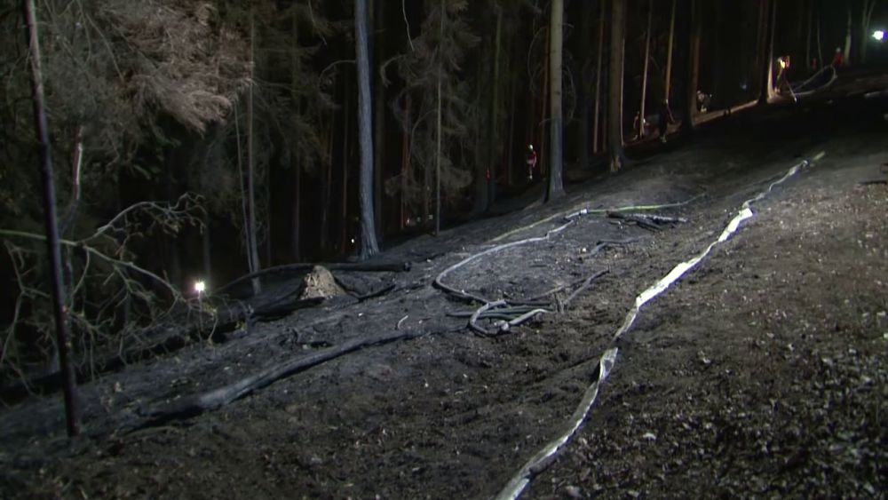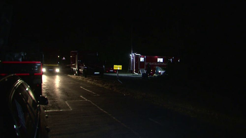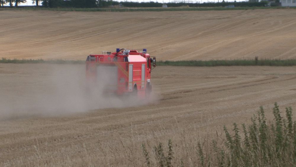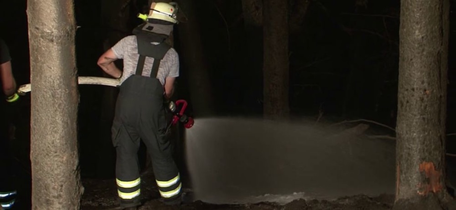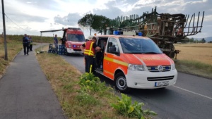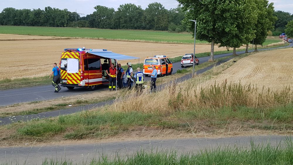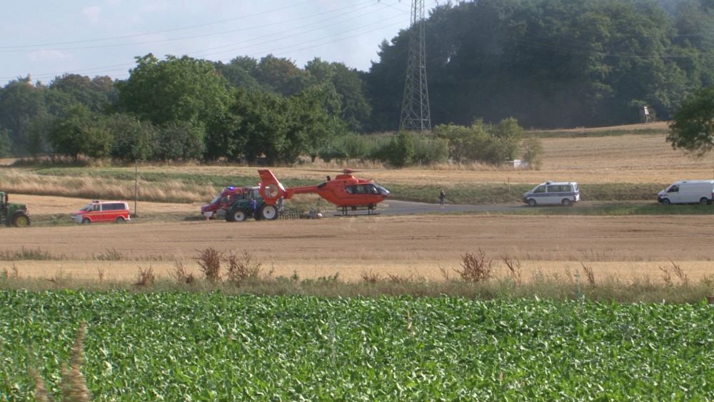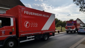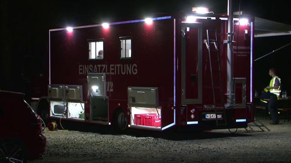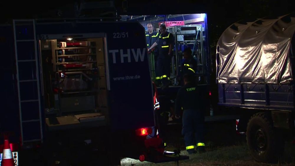 Ein Pendelverkehr wurde aufgebaut, damit immer genügend Löschwasser zur Verfügung stand. Die Feuerwehrkameraden und Kameradinnen mussten ständig abgewechselt werden. Zum einen müssen sie ständig ihre Schutzkleidung tragen, zum anderen herrschen unerträgliche Außentemperaturen. Zu allem Unglück gab es bereits zwei Verletzte unter den Einsatzkräften. Eine Person litt unter Erschöpfung, eine weitere hatte sich am Fuß verletzt. Insgesamt waren bei dem Feuer rund 3000m² Wald und 5000m² Stoppelfeld in Brand geraten. Auch drei Hubschrauber wurden zur Brandbekämpfung eingesetzt. Der Rettungshubschrauber Christoph 7 zur Erkundung und zwei zum Abwurf von Löschwasser. Gegen Abend wurden dann weitere Kräfte alarmiert, um die Einsatzstelle auszuleuchten. Durch die enorme Rauchentwicklung musste auch die ICE Strecke gesperrt werden, die jedoch gegen 19.30 Uhr wieder frei gegeben werden konnte. Allerdings mussten die Zugführer langsam auf Sicht fahren um die Einsatzkräfte nicht zu gefährden. Die Einsatzleitung geht nun davon aus, dass die Löscharbeiten noch bis in die Morgenstunden andauern wird.