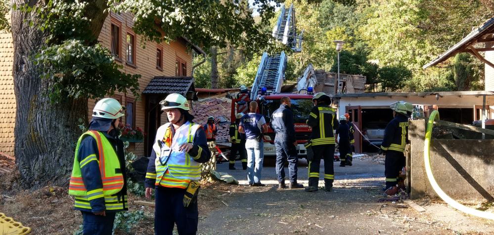 In der Nacht haben die Einsatzkräfte den zunächst vermissten Hausbewohner tot aus den Trümmern geborgen. Ein Mädchen (12) aus der Nachbarschaft wurde von umherfliegenden Glasscherben getroffen und verletzt. Das Mädchen wurde mit dem Rettungswagen in ein Krankenhaus gefahren. Den Einsatzkräften bot sich ein grausames Bild der Verwüstung. Von dem Wohnhaus war nur noch ein riesiger Trümmerhaufen übrig. Überall an der Einsatzstelle lagen Teile des Hauses herum. Über 150 Einsatzkräfte, der Feuerwehr, THW, Rettungsdienst, Bundeswehr und eine Rettungshundestaffel mit Trümmersuchhunden, die Polizei am Boden und mit einem Hubschrauber mit Wärmebildkamera suchten nach der noch vermissten Person. Ein direktes Betreten der Einsatzstelle ist zur Stunde noch nicht möglich. Die Trümmer müssen für die Personensuche vorsichtig abgetragen werden. Was zur Explosion geführt hat, konnte zur Stunde noch nicht gesagt werden, es wird jedoch eine Gasexplosion vermutet, da das Haus mit Gas versorgt wird. An der Einsatzstelle machte sich Landrat Winfried Becker ein Bild von dem Unglück. Notfallseelsorger betreuen zur Stunde die Angehörigen. Der Sachschaden wird von der Polizei auf ca. 200.000 Euro geschätzt.
