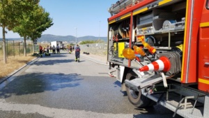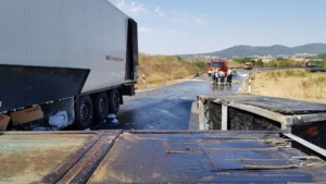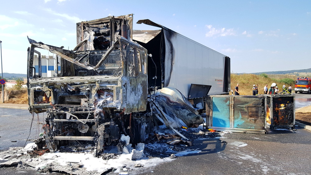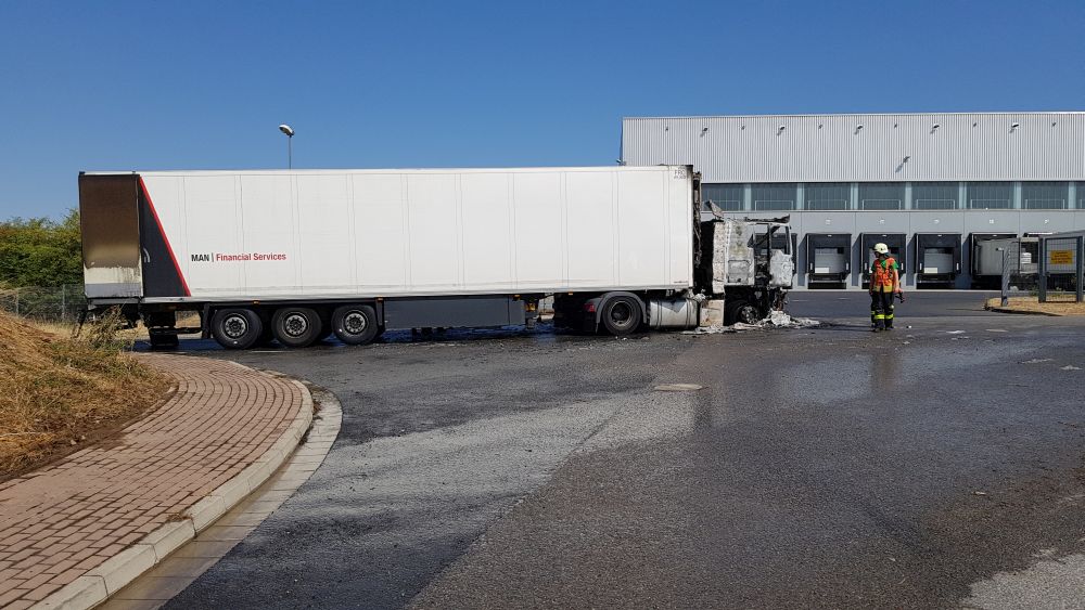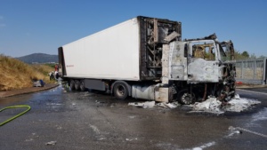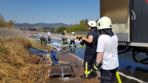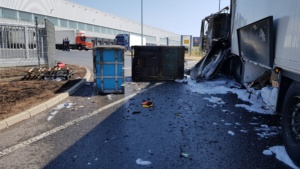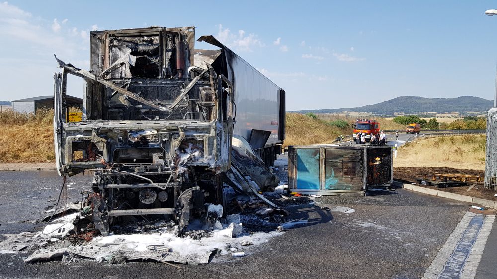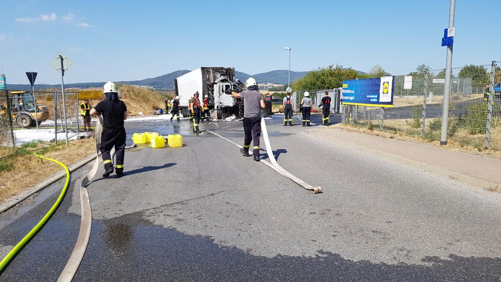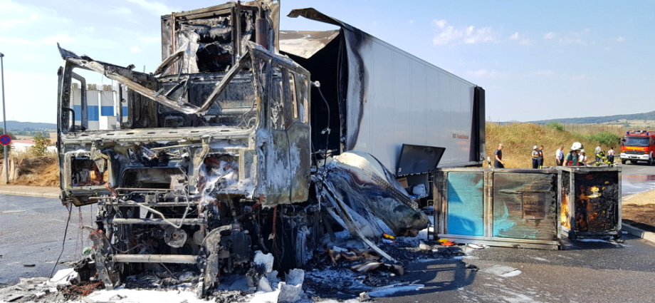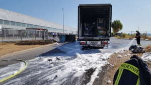 Edermünde – Am Dienstagmorgen gegen 10.30 Uhr kam es im Industriegebiet in Edermünde zum Brand eines LKW. Aus bisher noch nicht geklärter Ursache geriet das Führerhaus eines Sattelaufliegers in Brand. Löschversuche mit mehreren Feuerlöschern schlugen fehl. Beim Eintreffen der Einsatzkräfte stand die Zugmaschine bereits im Vollbrand und war nicht mehr zu retten. Mittlerweile hatte das Feuer auch schon auf den Auflieger übergegriffen. Der LKW war mit Abfall beladen, der im vorderen Bereich des Aufliegers bereits Feuer gefangen hatte.