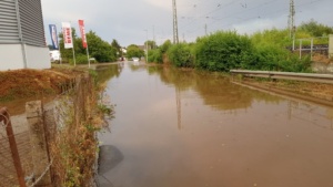 Mittelhessen / Kirchhain – Nach tagelangem Sonnenschein muss irgendwann auch wieder einmal der Regen folgen. In Kirchhain bei Stadt Allendorf war es dann doch ein wenig zu viel des Guten. Straßen wurden überflutet, und Fahrzeuge blieben in der braunen Brühe stecken. Die Feuerwehr war im Dauereinsatz und musste mehrere hundert Einsatzstellen abarbeiten.