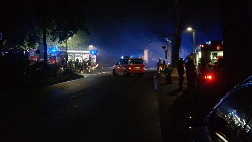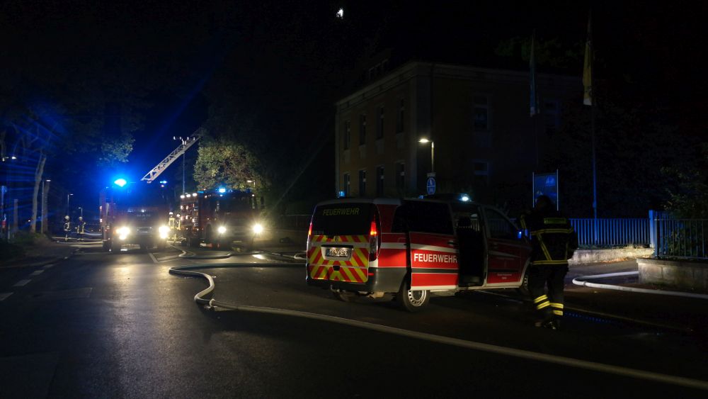 Durch die Lage des Gebäudes, hatte die Feuerwehr schwierigkeiten die Drehleiter gerzielt einsetzen zu können. Bei dem davon betroffenen Gebäude handelt es sich um ein Nebengebäude auf einem Grundstück an der Bahnhofstraße. Das Haupthaus war von dem Feuer nicht betroffen. Das Nebengebäude, in dem sich eine Wohnung, Garagen und ein Büro befindet, ist zurzeit nicht bewohnt und befindet sich in Renovierung. Der Brand war offenbar im Bereich des Obergeschosses des Gebäudes ausgebrochen. Durch den Einsatz der alarmierten Feuerwehr, konnte das Ausmaß des Schadens auf den Dachstuhl begrenzt werden. Die Polizei beschlagnahmten die Brandstelle am Abend für die weitere Ermittlungen zur Brandursache.