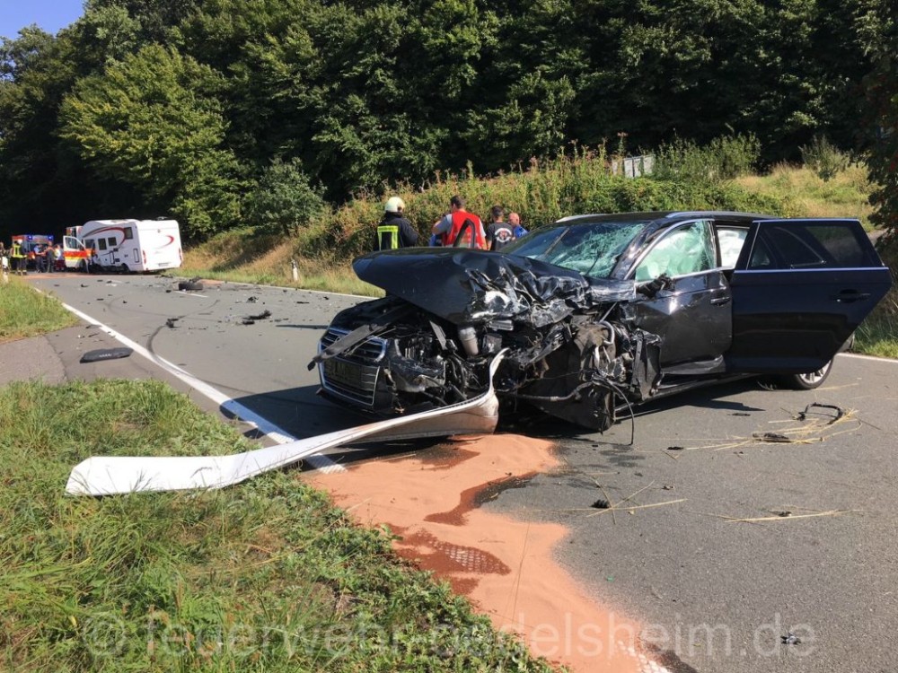 Oberweser – Am Samstag kam es auf der B80 in Höhe Gewissenruh gegen 15 Uhr zu einem schwerern Verkehrsunfall. Bei dem Verkehrsunfall zwischen einen PKW und einem Wohnmobil waren sechs Personen beteiligt. Außerdem waren auch zwei Hunde im Wohnmobil dabei.