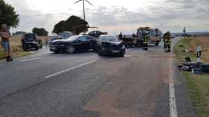 Aus noch nicht geklärter Ursache erkannte der 20-jährige dies zu spät und fuhr auf das abbremsende Fahrzeug auf. Durch den Zusammenprall wurde das Fahrzeug des 46-jährigen in den Gegenverkehr geschoben und stieß hier mit dem Fahrzeug eines 56-jährigen zusammen, der die L 3215 in entgegengesetzter Richtung befuhr. Bei dem Zusammenstoß wurde der 20-jährige schwer, aber nicht lebensbedrohlich verletzt. Durch den Rettungshubschrauber wurde er in ein umliegendes Krankenhaus geflogen. Im vorausfahrenden Fahrzeug des 46-jährigen wurden der Fahrer selbst und seine 68-jährige Mitfahrerin leicht, eine weitere 43-jährige Mitfahrerin schwer, aber nicht lebensbedrohlich verletzt. Die 43-jährige wurde durch die Rettungskräfte in ein umliegendes Krankenhaus verbracht. Der 56-jährige Fahrer des entgegenkommenden Fahrzeuges wurde leicht verletzt. Aufgrund der Rettungs – und Bergungsarbeiten war die L 3215 für rund 90 Minuten gesperrt. An den Fahrzeugen entstand Sachschaden, der sich zurzeit nicht genau beziffern lässt. Neben Polizei waren der Rettungshubschrauber, ein Notarztwagen, mehrere Rettungswagen und die Feuerwehr Bad Emstal im Einsatz.