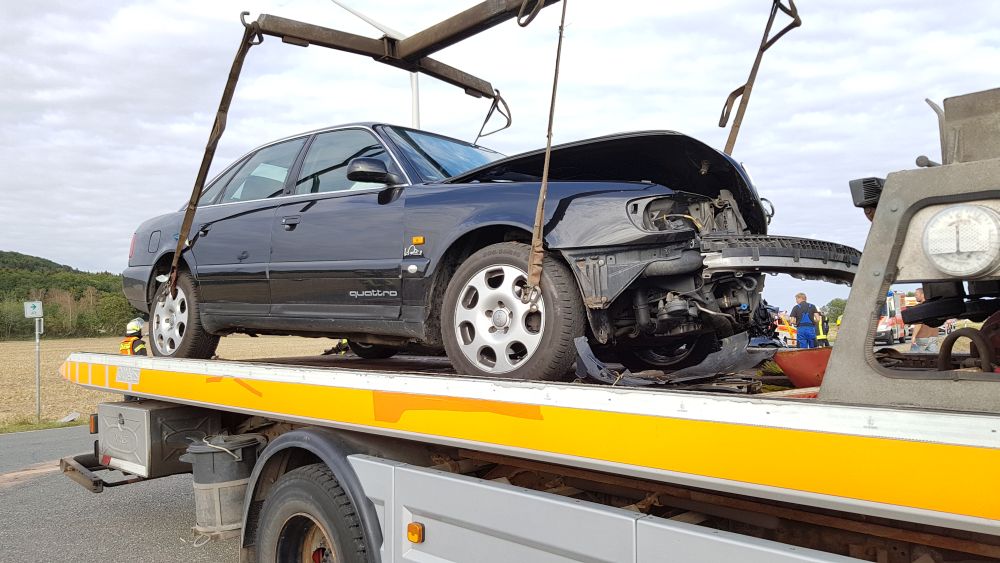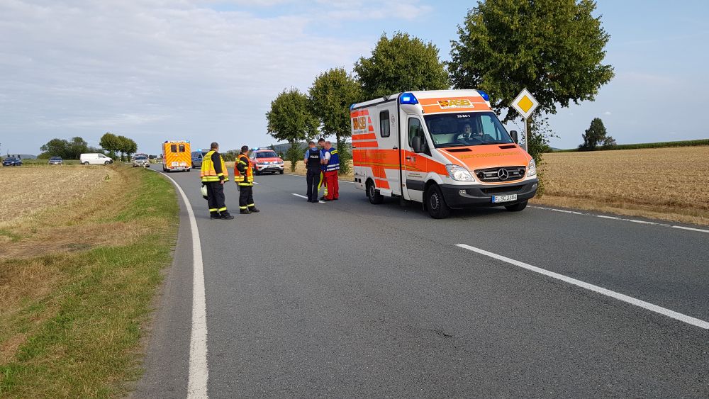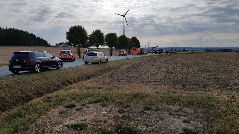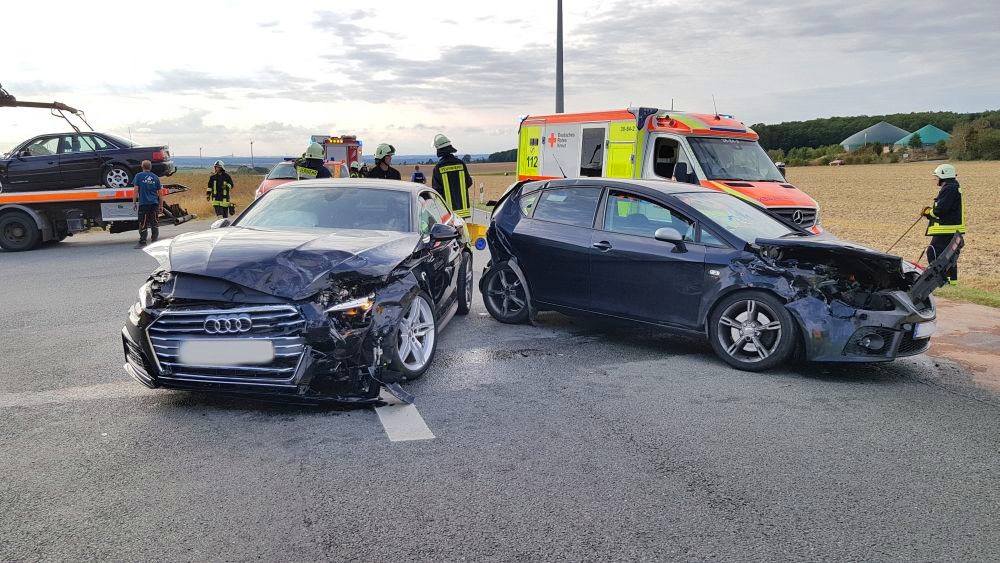 Aus noch nicht geklärter Ursache erkannte der 20-jährige dies zu spät und fuhr auf das abbremsende Fahrzeug auf. Durch den Zusammenprall wurde das Fahrzeug des 46-jährigen in den Gegenverkehr geschoben und stieß hier mit dem Fahrzeug eines 56-jährigen zusammen, der die L 3215 in entgegengesetzter Richtung befuhr. Bei dem Zusammenstoß wurde der 20-jährige schwer, aber nicht lebensbedrohlich verletzt. Durch den Rettungshubschrauber wurde er in ein umliegendes Krankenhaus geflogen. Im vorausfahrenden Fahrzeug des 46-jährigen wurden der Fahrer selbst und seine 68-jährige Mitfahrerin leicht, eine weitere 43-jährige Mitfahrerin schwer, aber nicht lebensbedrohlich verletzt. Die 43-jährige wurde durch die Rettungskräfte in ein umliegendes Krankenhaus verbracht. Der 56-jährige Fahrer des entgegenkommenden Fahrzeuges wurde leicht verletzt. Aufgrund der Rettungs – und Bergungsarbeiten war die L 3215 für rund 90 Minuten gesperrt. An den Fahrzeugen entstand Sachschaden, der sich zurzeit nicht genau beziffern lässt. Neben Polizei waren der Rettungshubschrauber, ein Notarztwagen, mehrere Rettungswagen und die Feuerwehr Bad Emstal im Einsatz.