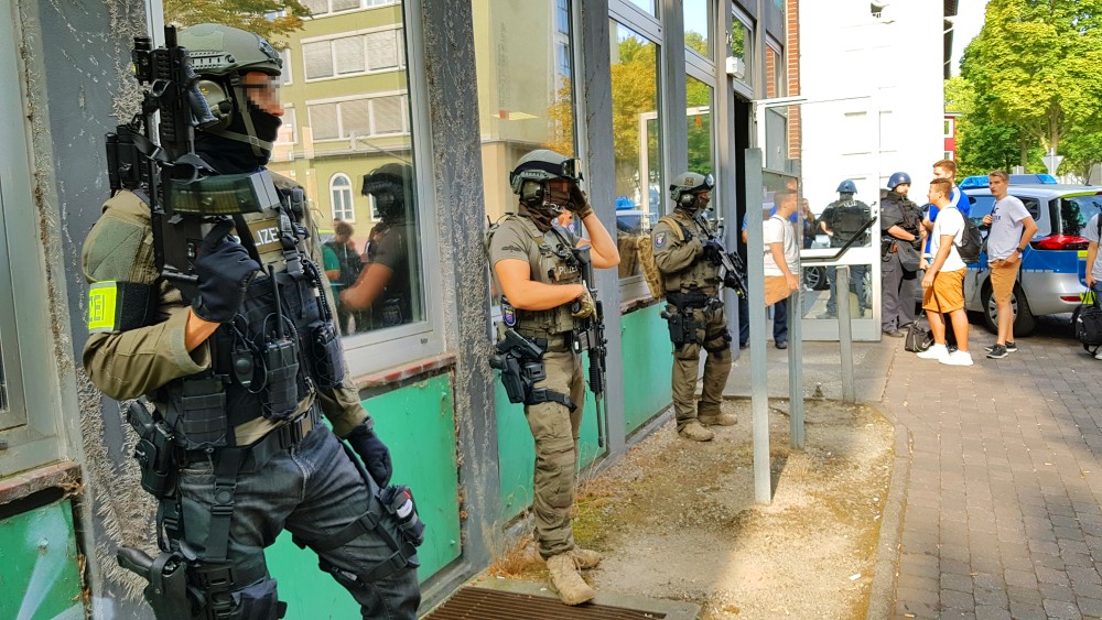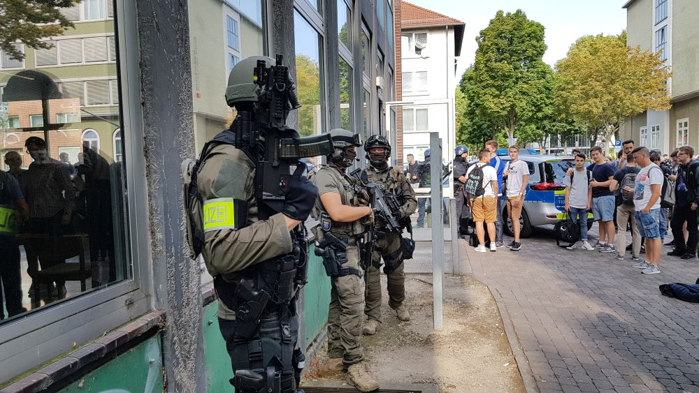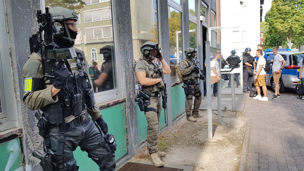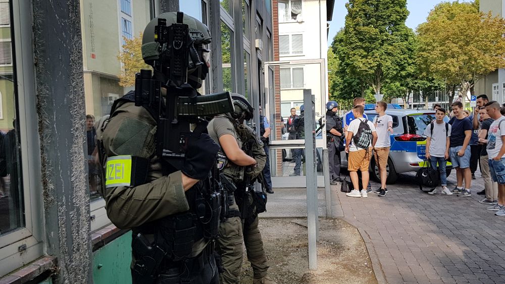 Kassel / Korbach – Am frühen Mittwoch Morgen kam es in Kassel und Korbach zu zwei großen Polizeieinsätzen. In Kassel rückte das SEK zur Paul-Julius-von-Reuter-Schule aus. Ein anonymer Anrufer drohte kurz nach 7 Uhr mit einer Gewaltausübung an der Schule. Um jedwede Gefahr auszuschließen hat die Polizei die Schule und die angrenzenden Straßen für Personen und Fahrzeuge abgesperrt.