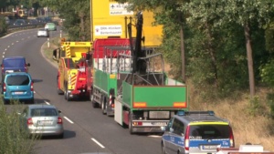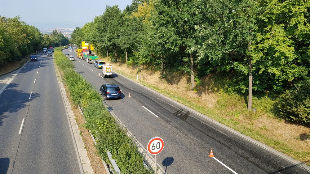 Kassel – Am Donnerstag kam es gegen 9.10 Uhr auf der Dresdner Strasse in Kassel zu einem Unfall mit einem LKW. Das Fahrzeug ist mit seinen Kranausleger an einer Fußgängerbrücke hängen geblieben. Durch den Aufprall sind Hydraulikleitungen beschädigt worden, sodass Öl auf die Fahrbahn laufen konnte. Die Feuerwehr ist im Einsatz und nimmt die Flüssigkeiten auf. Wieso der Kran an die Brücke gelangen konnte, ist derzeit noch unklar.