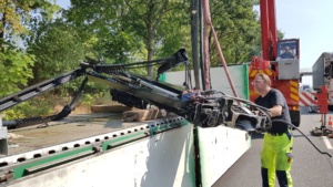 In wie weit das Bauwerk durch den Aufprall beschädigt wurde, ist aktuell noch unklar, wurde aber aus Sicherheitsgründen vorsorglich gesperrt. Durch den Unfall kam es zu erheblichen Behinderungen. Die Vollsperrung ist mittlerweile wieder aufgehoben und der Verkehr wird einspurig an der Unfallstelle vorbei geführt. Ein Abschleppunternehmen wurde damit beauftragt den beschädigten Kran komplett zu demontieren, da der Kranaufbau umgeknickt ist und nun halb auf dem Anhänger liegt. Über die Höhe des Sachschadens konnten noch keine Angaben gemacht werden.