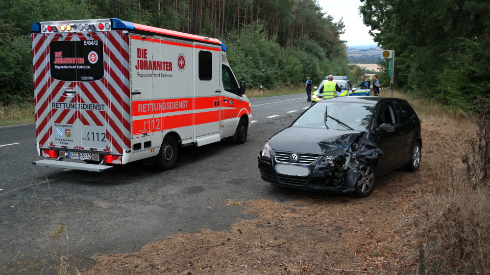 Zu dem Unfall auf der Landesstraße 3460 war es gegen 7:20 Uhr heute Morgen gekommen. Der von Bergshausen in Richtung Dörnhagen fahrende und mit etwa 40 bis 50 Personen besetzte Linienbus, in dem zu dieser Zeit überwiegend Schüler saßen, hatte zunächst an einer Haltestelle in Höhe einer ehemaligen Autobahnabfahrt angehalten. Der 40-jährige Fahrer des Busses war dann vom Seitenstreifen angefahren. Der von hinten kommende Fahrer des Taxis fuhr jedoch aus derzeit unbekannten Gründen an dem anfahrenden Bus vorbei und dabei in den Gegenverkehr. Dort kam ein VW Golf entgegen, dessen Fahrer stark bremsen musste, um nicht frontal mit dem Taxi zusammenzustoßen. Die hinter diesem Golf fahrende 23-Jährige aus Guxhagen hatte mit ihrem Polo allerdings nicht mehr rechtzeitig anhalten können und war reflexartig nach links ausgewichen. Der Polo touchierte dabei noch leicht den Golf und krachte dann auf der Gegenfahrbahn mit der linken Fahrzeugfront seitlich versetzt mit dem entgegenkommenden Linienbus zusammen. Das Taxi soll kurz vor dem Zusammenstoß noch durch die Engstelle hindurchgefahren, vor dem Bus wieder eingeschert und ohne anzuhalten in Richtung Dörnhagen weitergefahren sein.