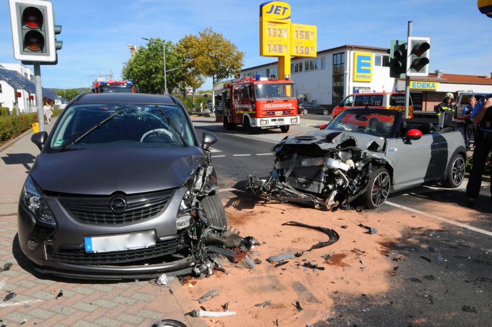 Niestetal – Zu einem schweren Verkehrsunfall mit insgesamt sechs Verletzten Personen kam es am Dienstagnachmittag auf der Hannoverschen Straße in Niestetal. Nach ersten Informationen der Polizei krachten zwei Fahrzeuge in Höhe einer Tankstelle ineinander. Wie es zu dem Unfall kommen konnte, ist derzeit noch unklar. Durch den Zusammenstoß der Fahrzeuge wurde mindestens eine Person schwer verletzt.  Diese wurde von der Feuerwehr aus dem in der Front völlig zerstörten Mini Cooper gerettet.