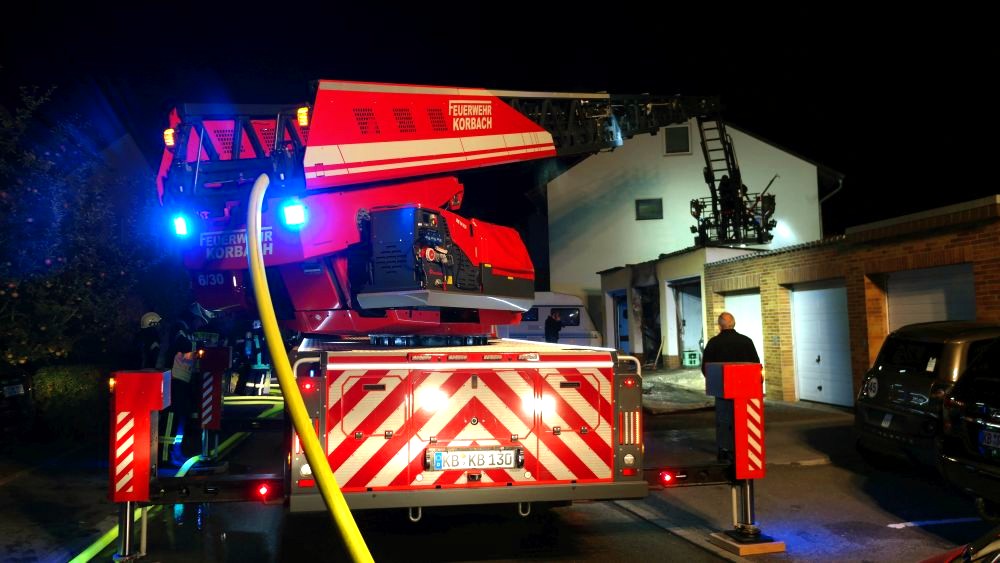 Korbach – In der Nacht von Dienstag auf Mittwoch gegen 02:45 Uhr brach ein Feuer in der Pyrmonter Straße in einer Garage aus. Es handelte sich dabei um die mittlere von drei nebeneinander stehenden Garagen. Beim Eintreffen der Einsatzkräfte schlugen die Flammen bereits aus dem Dach. In der Garage befanden sich unter anderem ein Motorrad, ein Anhänger, mehrere Fahrräder und Werkzeugschränke. Die Garage brannte völlig aus.