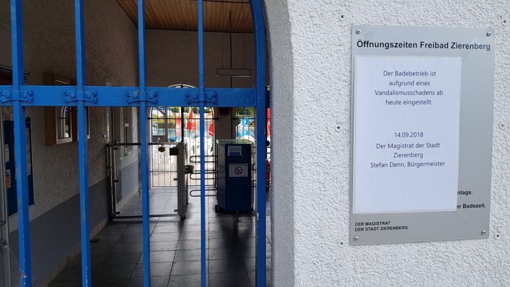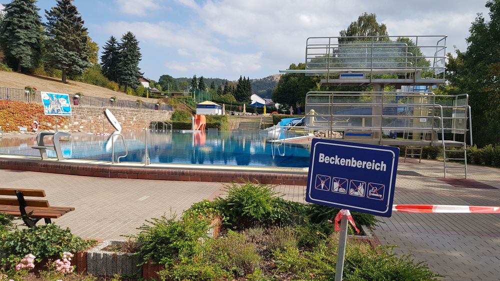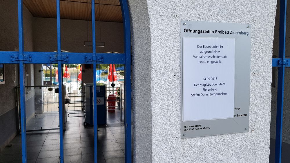 Da jetzt zunächst das Gesundheitsamt das Wasser auf mögliche Keime untersuchen müsste, hat man sich entschlossen das für Sonntag geplante Saisonende vorzuverlegen und das Schwimmbad sofort zu schließen. Sehr ärgerlich für die Schwimmbadgänger, denn bis Sonntag soll das Wetter weiter schön bleiben. Der schlechte Scherz kann die nächtlichen Eindringlinge teuer zu stehen kommen, denn die Stadt Zierenberg hat eine Strafanzeige gestellt.