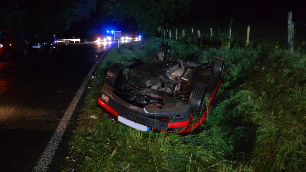 Hofgeismar – Zu einem Alleinunfall kam es am Montagabend gegen 20.45 Uhr auf der K54 zwischen Carlsdorf und Hombressen. Der Fahrer eines BMW befuhr die Kreisstraße von Carlsdorf in Fahrtrichtung Hombressen. In einer Linkskurve verlor der 20-Jährige Fahrer aus dem Raum Hofgeismar die Kontrolle über sein Fahrzeug, kam nach links von der Fahrbahn ab, fuhr im Grünstreifen noch rund 100 Meter weiter, bis er frontal gegen ein Wasserdurchlass prallte und sich mit dem Fahrzeug überschlug. Die alarmierte Feuerwehr fand den Fahrer neben seinem Fahrzeug.