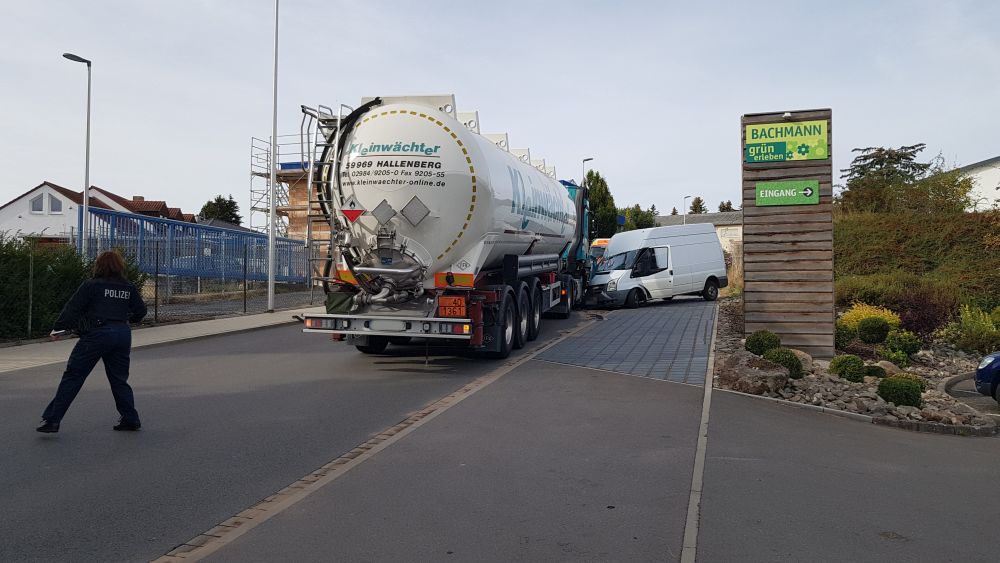 Der LKW Fahrer kam mit dem Schrecken davon. Da der Silozug einen Gefahrstoff geladen hatte, wurden dem entsprechend weitere Kräfte nachalarmiert. Zum Glück konnte hier Entwarnung gegeben werden, denn der mit Kohlestaub beladene LKW hatte keine Beschädigungen aufzuweisen. Auf Grund einer Baustelle wurde die Siemensstrasse als Umleitungsstrecke ausgewiesen. Durch die nun folgende Vollsperrung kam es zu erheblichen Behinderungen. Zum Einsatz kam neben Polizei und Rettungsdienst auch die Feuerwehr Wolfhagen. Der Sachschaden wird auf mehrere 10.000 Euro geschätzt.