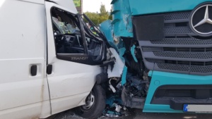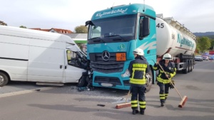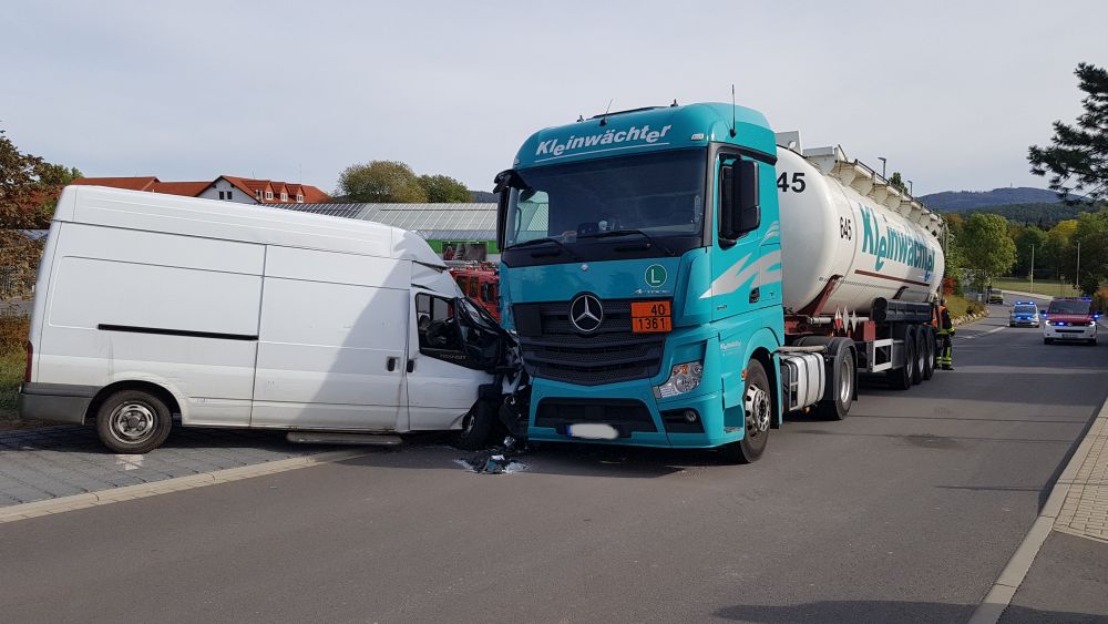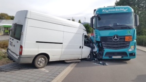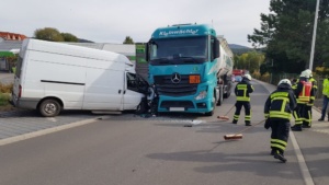Wolfhagen – Zu einem schweren Verkehrsunfall kam es am Mittwochvormittag gegen 10.20 Uhr in der Siemensstrasse in Wolfhagen. Etwa in Höhe der Stadtwerke Wolfhagen wurde dem Fahrer eines Kleintransporters nach eigenen Angaben plötzlich schwarz vor Augen, verlor die Kontrolle über sein Fahrzeug und krachte mit der Beifahrerseite in einen entgegen kommenden Silozug. Hierbei wurde der Unfallfahrer schwer verletzt und musste nach einer Erstversorgung an der Unfallstelle in ein Krankenhaus eingeliefert werden.