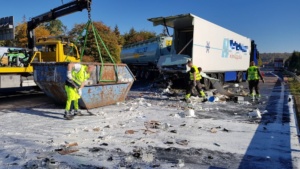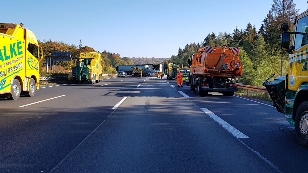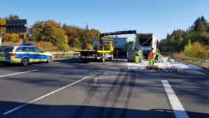Die Aufräumarbeiten werden noch einige Stunden andauern. Auf Grund des Unfalls musste die Autobahn komplett gesperrt werden. Der Verkehr staute sich auf eine Länge von rund 10 Kilometern. Auch die Umleitungsstrecken waren komplett überlastet. Wann genau die Autobahn wieder für den Verkehr frei gegeben wird, konnte uns die Polizei noch nicht mitteilen.
