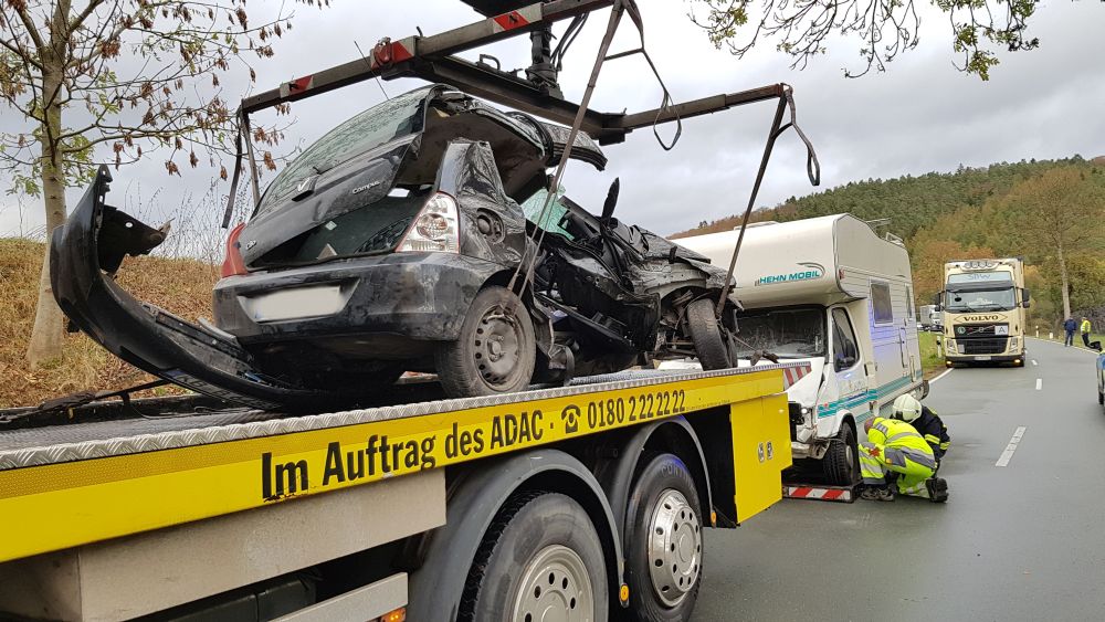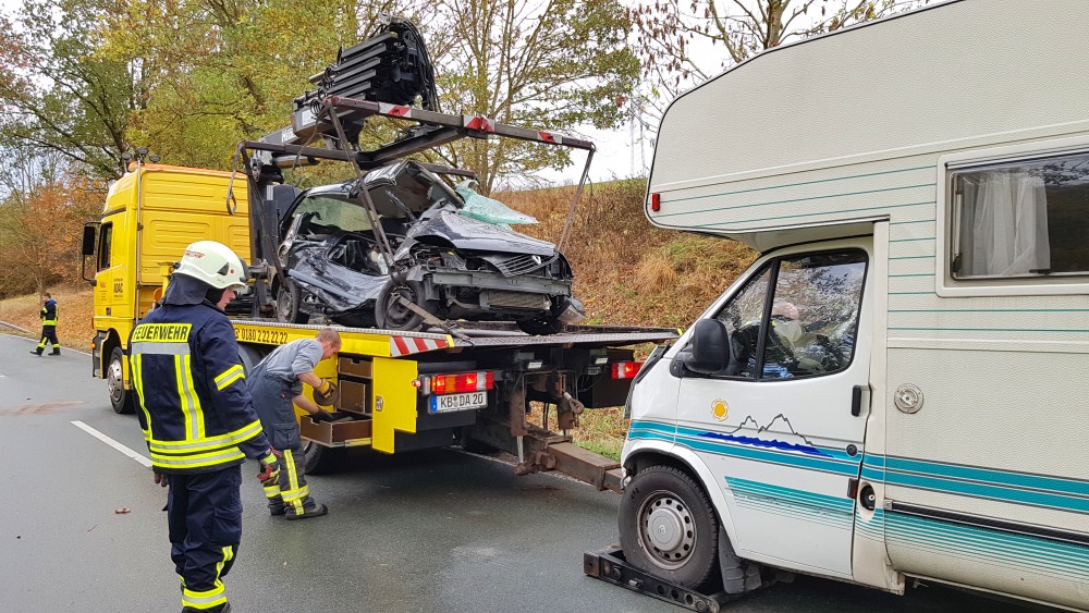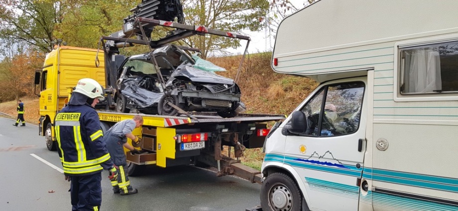 Höringhausen – Am Mittwoch gegen 15:15 Uhr kam es auf der L 3118 zwischen Höringhausen und Nieder-Waroldern zu einem Verkehrsunfall zwischen einem Pkw und einem Wohnmobil. Eine 35-jährige Fahrerin aus Diemelstadt war mit ihrem schwarzen Renault Clio auf der L 3118 von Höringhausen kommend in Richtung Nieder-Waroldern unterwegs. Auf dieser Strecke kam ihr kam ein Wohnmobil entgegen, in dem ein 45 und 49 Jahre altes Ehepaar mit ihren beiden 9 und 13 Jahre alten Kindern saß.