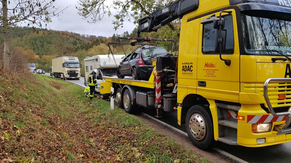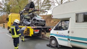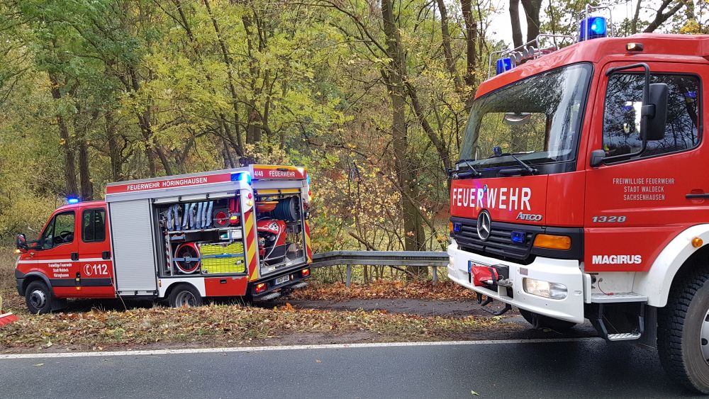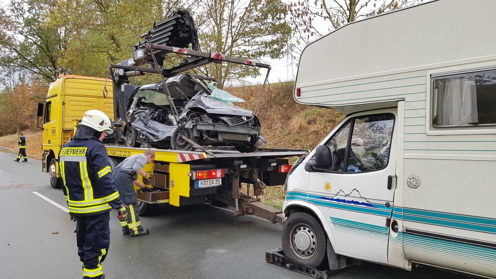 Aus bisher ungeklärter Ursache verlor die Fahrzeugführerin des Renault Clio in einer langgezogenen Rechtskurve die Kontrolle über ihr Fahrzeug und schleuderte frontal in das entgegenkommende Wohnmobil. Die alarmierte Feuerwehr Höringhausen und Sachsenhausen sicherten die Unfallstelle ab. Das Fahrzeug der 35-Jährigen lag auf der Seite und wurde mit einer Seilwinde gesichert. Nach Rücksprache mit dem Rettungsdienst, wurde die Unfallfahrerin aus Ihrem Fahrzeug befreit. Das Dach wurde aufgeschnitten und die Frau mit Hilfe eines Spineboard an den Rettungsdienst übergeben. Nach der Erstversorgung an der Unfallstelle wurde die Frau dann in ein Krankenhaus nach Korbach eingeliefert. Es besteht keine Lebensgefahr. Die Insassen des Wohnmobils erlitten einen Schock und wurden vorsorglich in ein Krankenhaus nach Bad Arolsen verbracht. Die Landstraße war für rund 90 Minuten voll gesperrt
