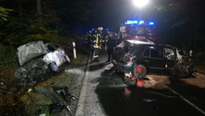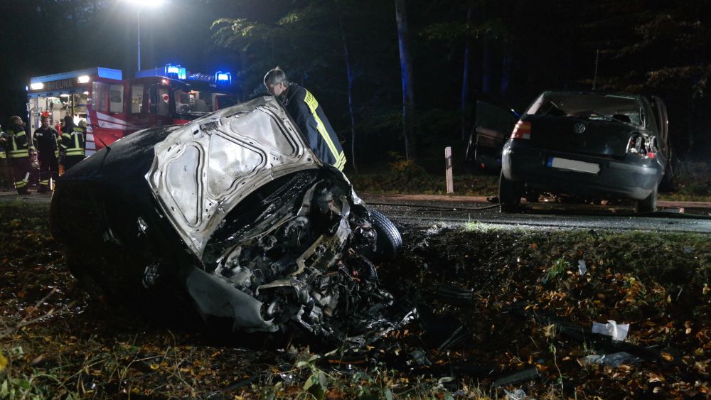 Nach den ersten Ermittlungen zum Unfallhergang war der 23-Jährige mit einem VW Golf von Oberlistingen in Richtung Breuna unterwegs. Der 19-Jährige befuhr die Landstraße mit einem VW Polo in entgegengesetzter Richtung. Im Verlauf einer Rechtskurve war der 23-Jährige aus bislang unbekannten Gründen vermutlich mit seinem Wagen auf die Bankette am Fahrbahnrand geraten. Anschließend verlor er offenbar die Kontrolle über seinen Pkw und kam auf die Gegenfahrbahn, wo es zum Zusammenstoß beider Autos kam. Zu allem Unglück fing das Fahrzeug des 19-jährigen Mannes auch noch Feuer. Schon beim Eintreffen der ersten Einsatzkräfte stand das Fahrzeug im Vollbrand. Ersthelfer reagierten vorbildlich und retteten zunächst den Mann aus dem brennenden Fahrzeug, anschließend der 23-jährigen. Die Wagen wurden bei dem Unfall erheblich beschädigt und mussten später abgeschleppt werden. Aufgrund des Unfalls und der Bergungs- sowie Reinigungsarbeiten musste die L 3080 bis etwa 10 Uhr voll gesperrt werden.